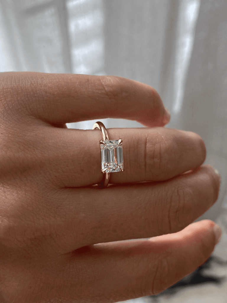 In 2023, traditional diamond orientations are being turned on their side with the rise of East-West settings. Instead of the classic vertical setting, East-West settings position the diamond horizontally across the finger. This unconventional placement adds a modern twist to traditional designs and creates a striking visual impact.