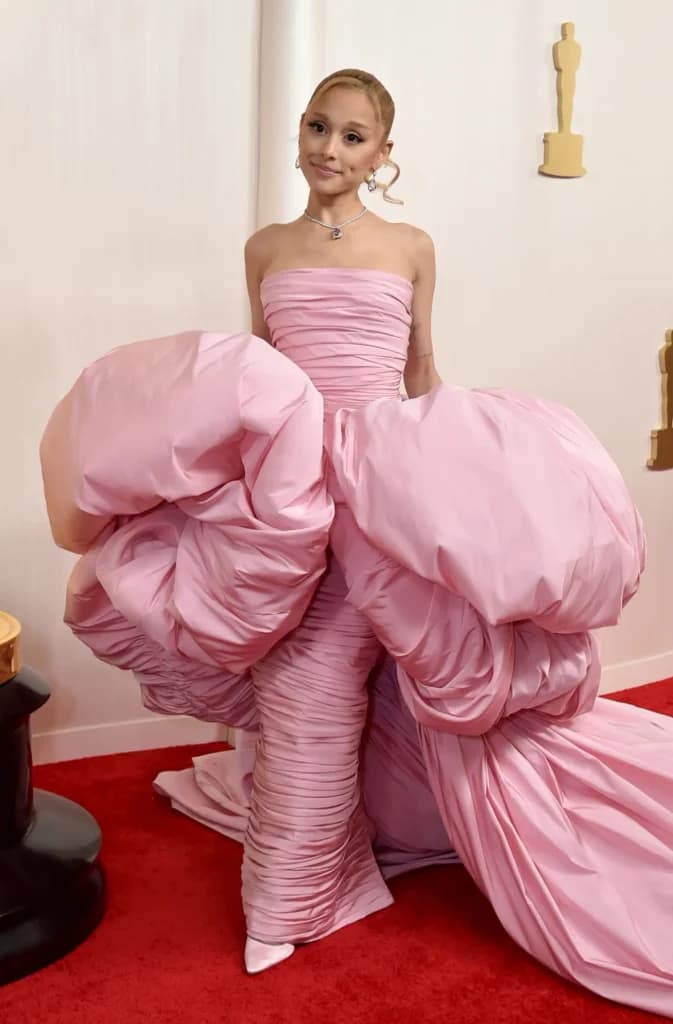 Ariana Grande in custom Giambattista Valli as she channels Glinda from her upcoming movie, Wicked.