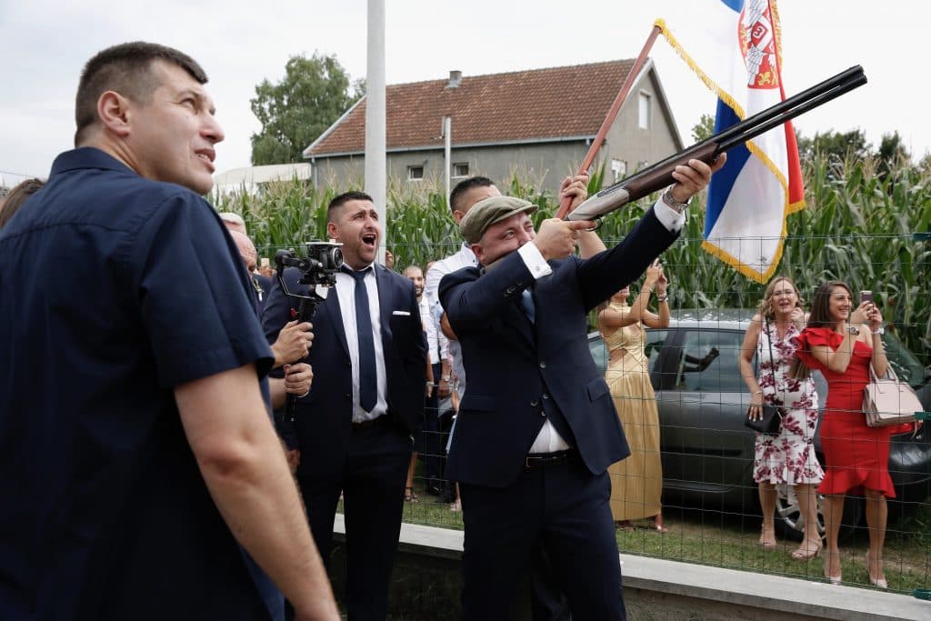An older tradition mostly done in Serbian villages due to the danger of using guns in urban areas. The practice involves hanging an apple high in a tree beside the bride’s home, where the groom must then use a rifle to shoot down the apple before he can enter the house. Modern interpretations of this tradition now include picking the apple from the front of the bride’s house.