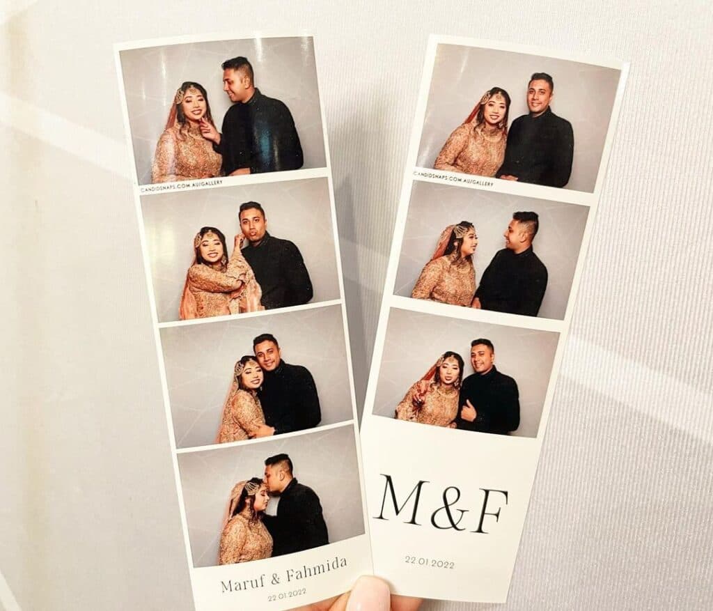 A photobooth is a mobile station that is set up in a pre-agreed corner of your reception venue on the day itself. The set-up consists of a professional camera, an aesthetically pleasing backdrop, an umbrella light, and a high-quality printer that will immediately churn out pristine copies of the freshly taken photographs.