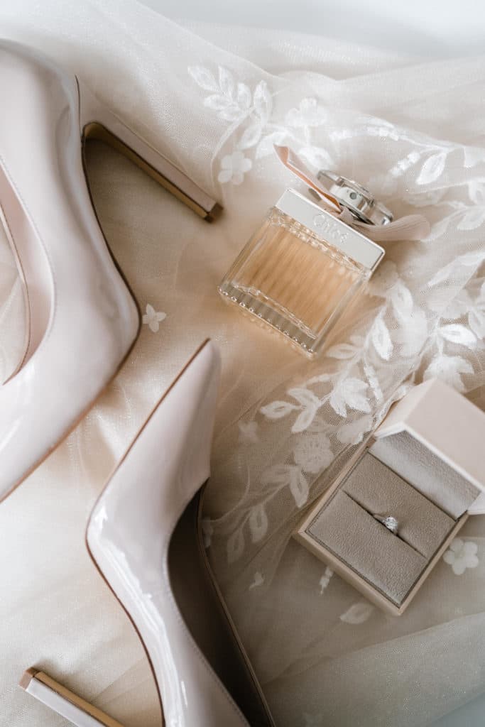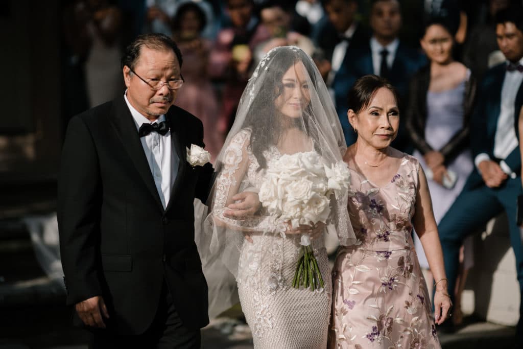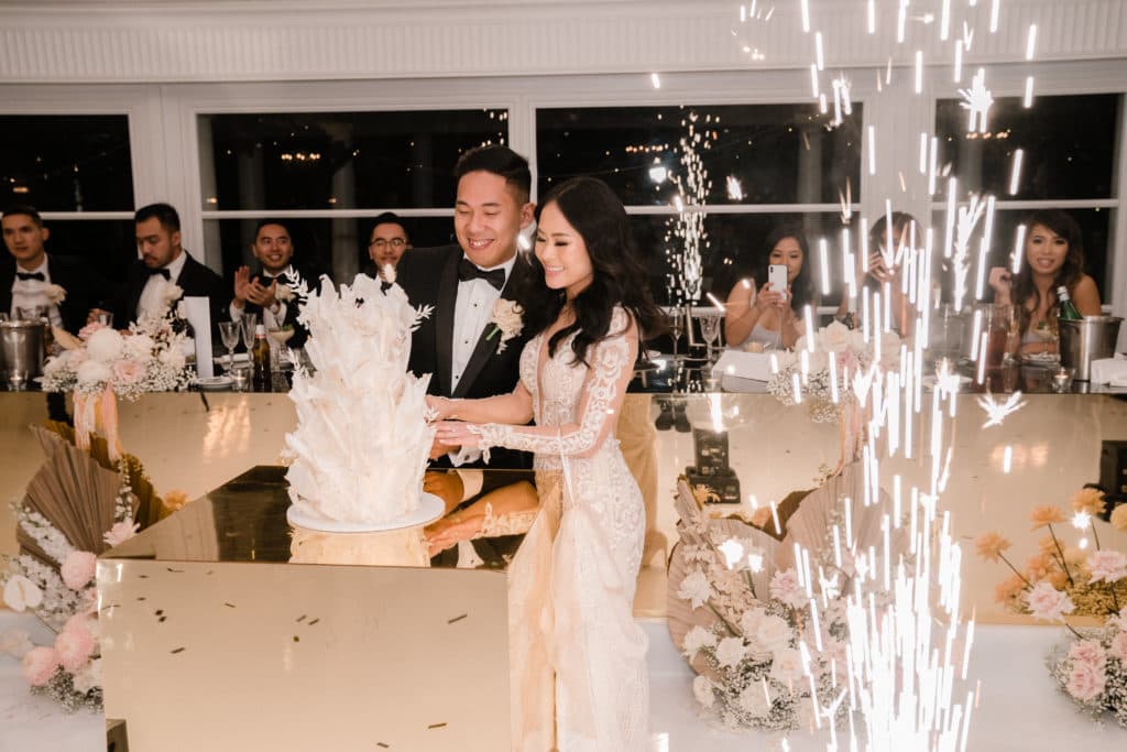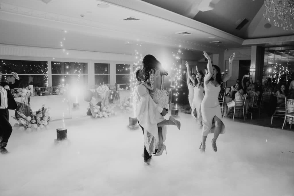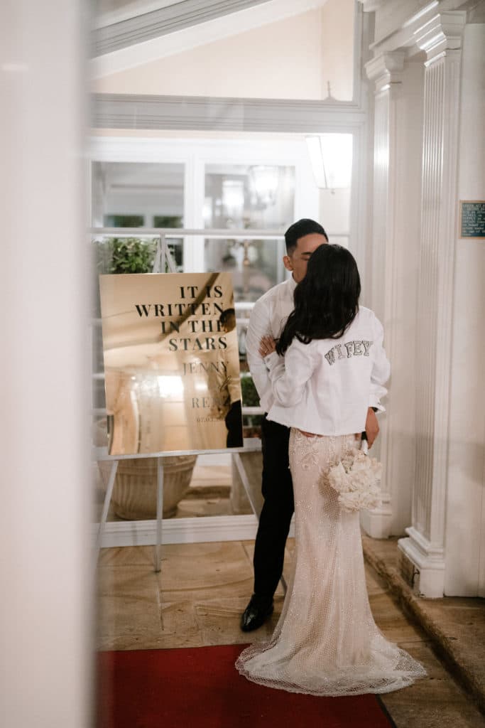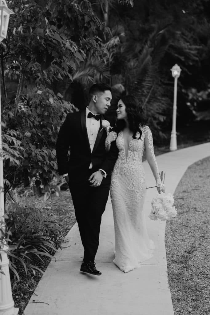 The couple said their vows in the breath-taking gardens, beneath an arch of baby’s breath and soft pink and white florals, while their reception was adorned in beautiful shades of pink, gold and white, creating a stunning ambience for the night ahead.