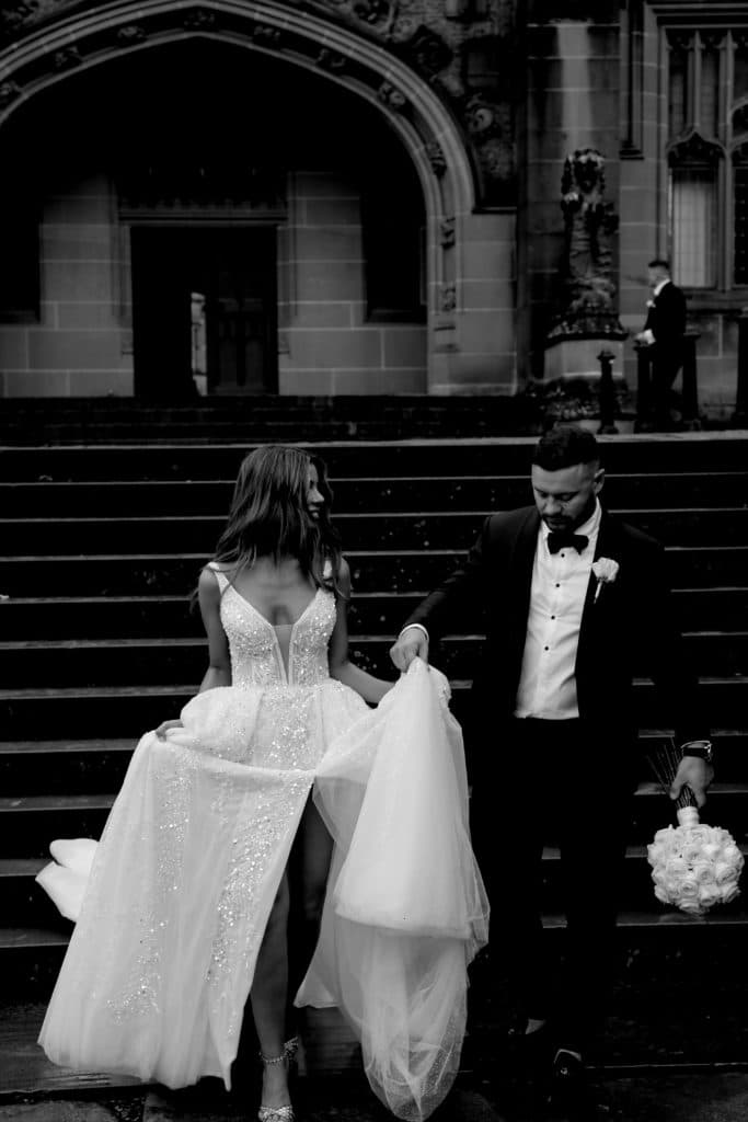 Tara and Ljubinko met at a friends wedding and the rest is history! Their much anticipated wedding was everything they expected and more. Bride Tara donned a beautifully sparkling gown complete with a thigh high split by Pallas Couture, alongside her Groom in a sleek tuxedo by Alex Goodman.