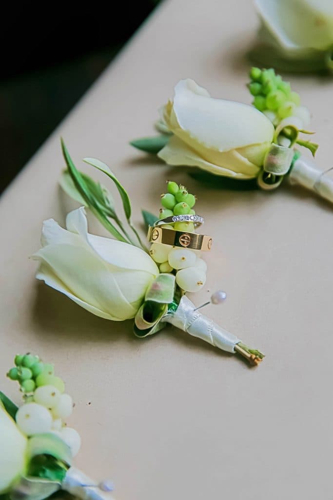 “There were white flowers and lots of greenery. I even did a little DIY and made the bonbonniere myself. I wanted something traditional from our Greek and Italian backgrounds, so I bought the organza bags and white sugared almonds, and put it all together.”