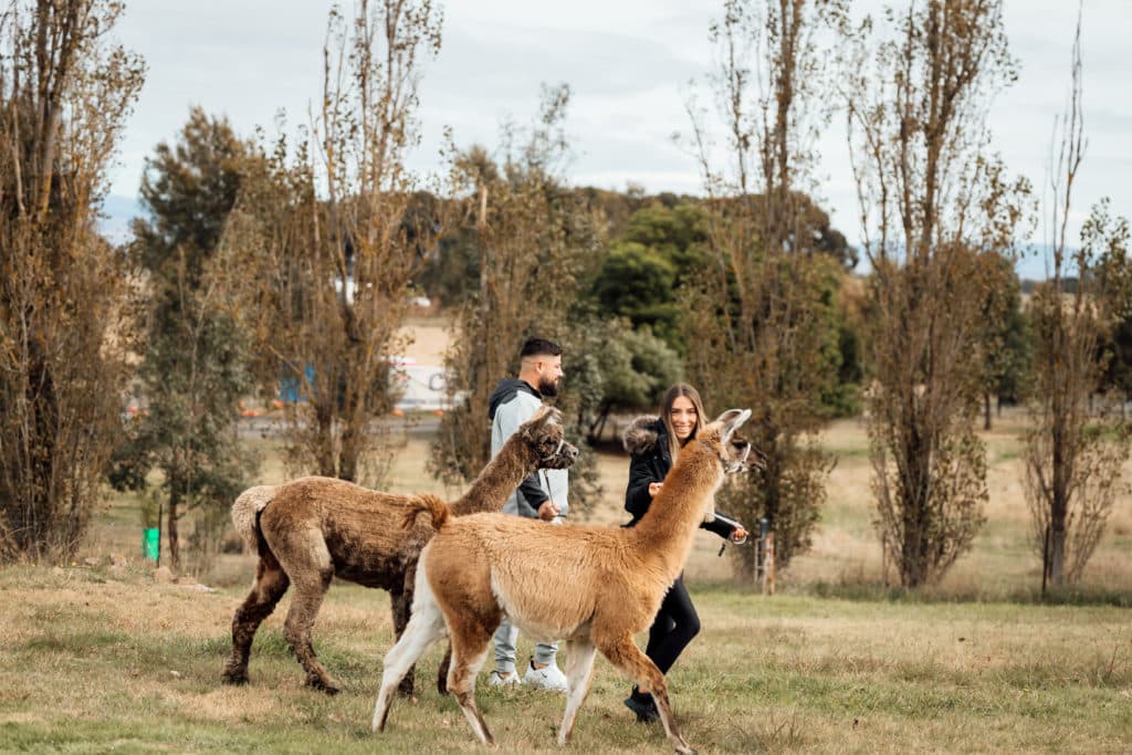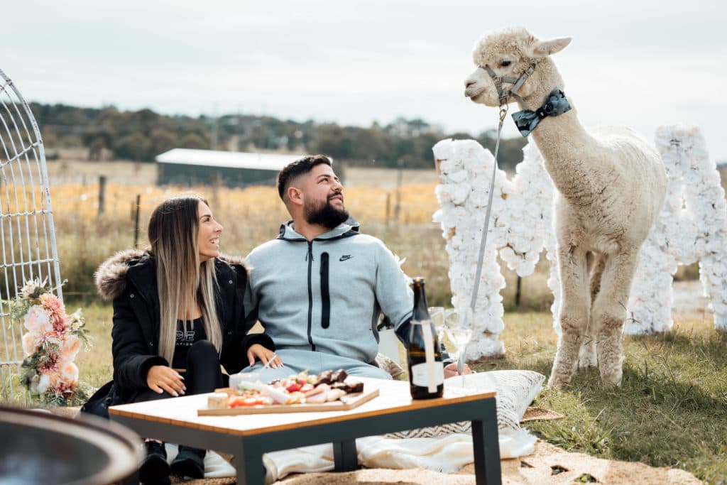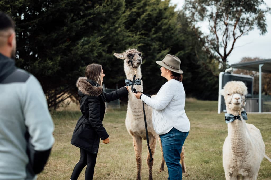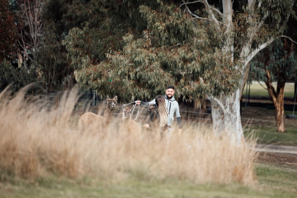 The couple both love the outdoors, “Alex enjoys the farm life as he has a farm of his own with his family, and I spent most of her childhood camping, 4×4 adventures with my dad and just enjoying the great outdoors,” Melody told Wedded Wonderland. She has always loved llamas and alpacas since she was very young, hence why Alex surprised her with the most unique and meaningful proposal ever!