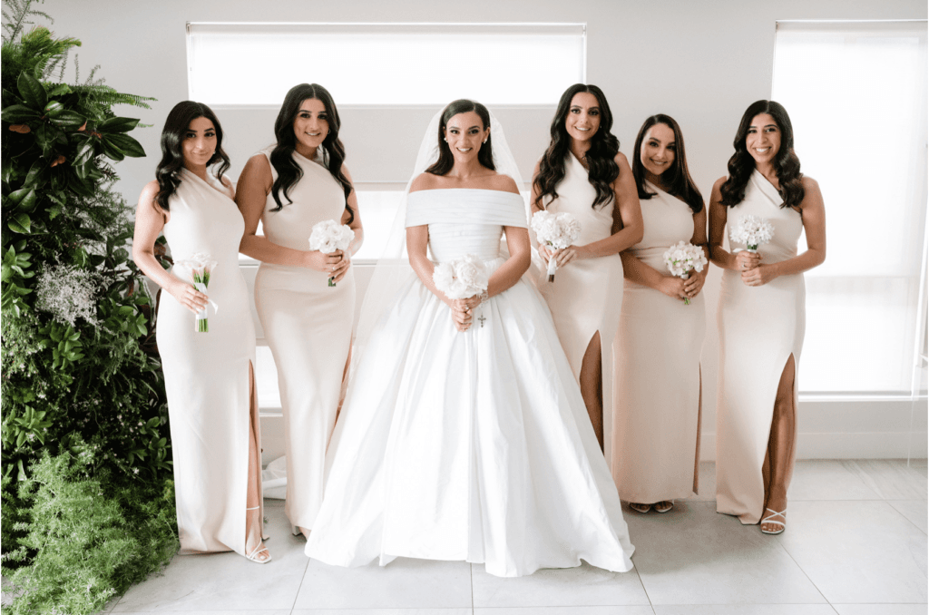 Kristen herself is a florist and installed all the florals for her home, “Everyone thought I was crazy for designing and installing the flowers for my home. They kept saying to just rest but I love keeping myself (a little too) busy. I knew I wanted lots of greenery. As a florist, I think people underestimate what foliage and greenery can bring. It’s gorgeous on its own. There’s something special about doing something like that for your own wedding day!”
