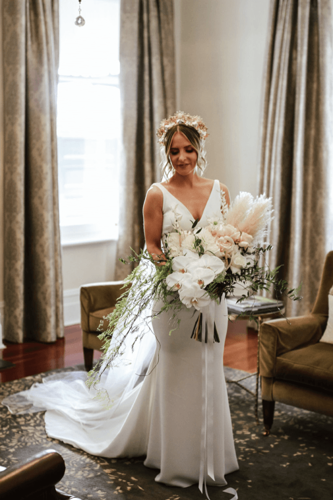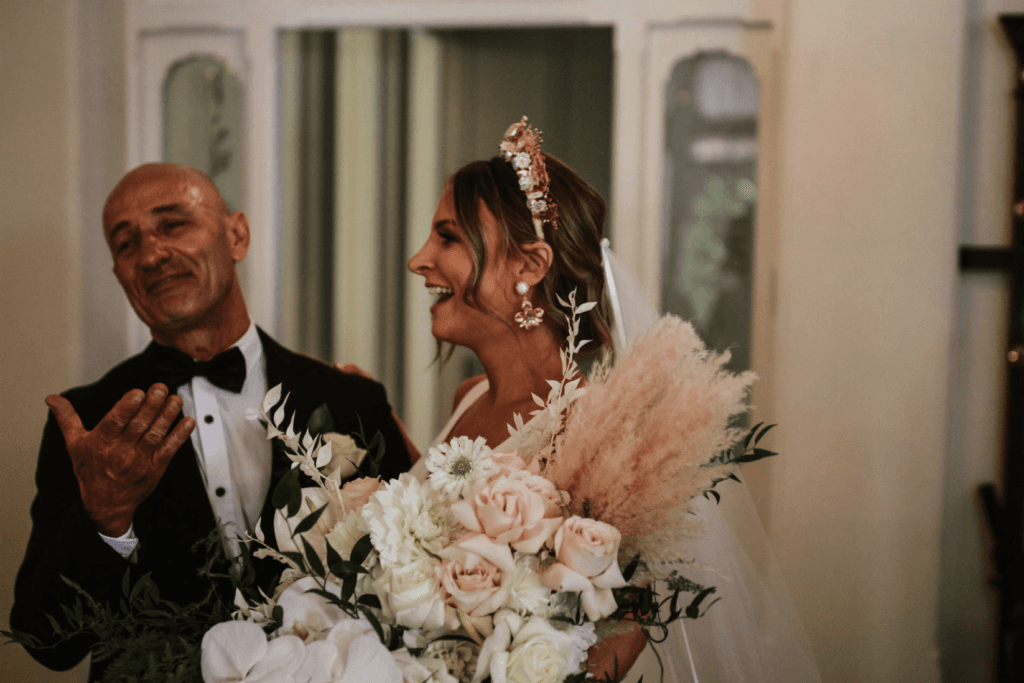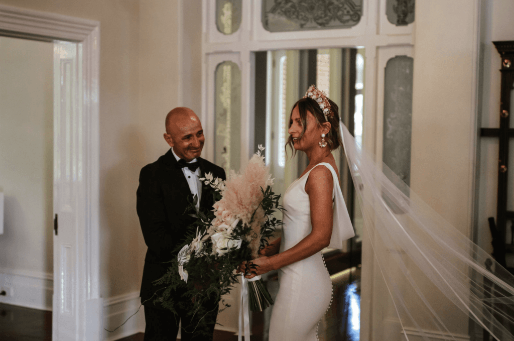 “It was so no fuss – most of the weddings we have been to are held in two seperate locations, we loved that our ceremony and reception were in the one stunning venue. Guests had aperol spritz and pizza in between while we did some quick photos – we loved the relaxed vibe we created.”