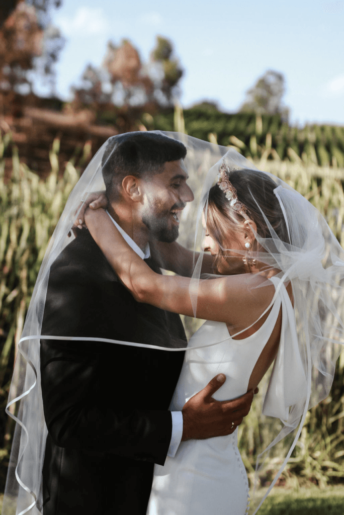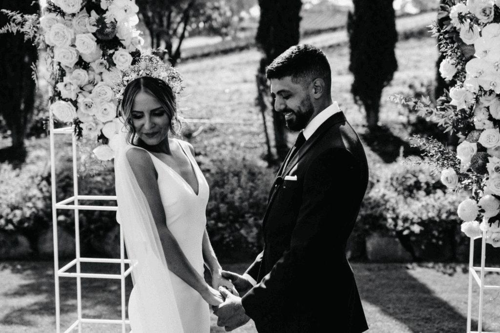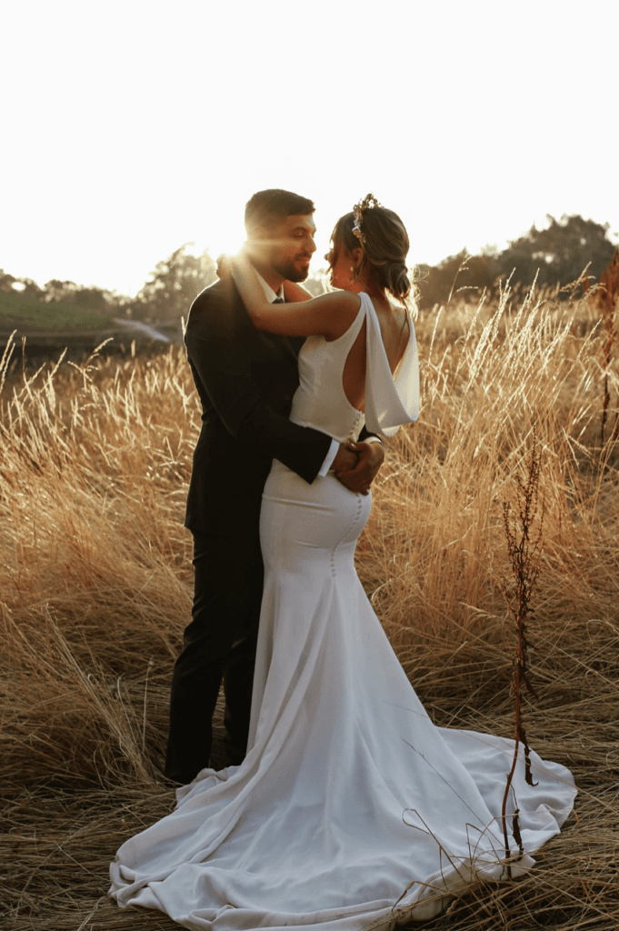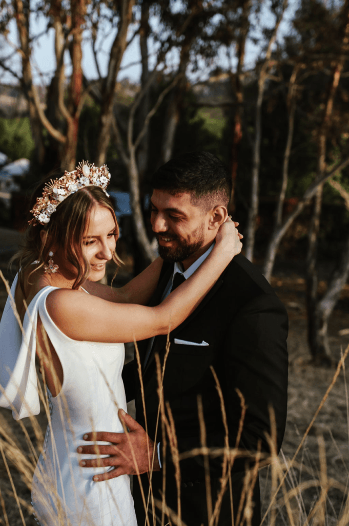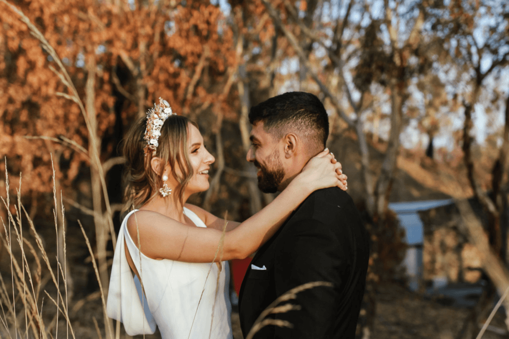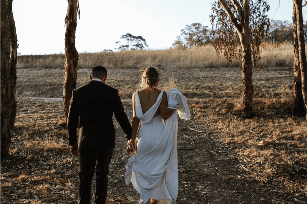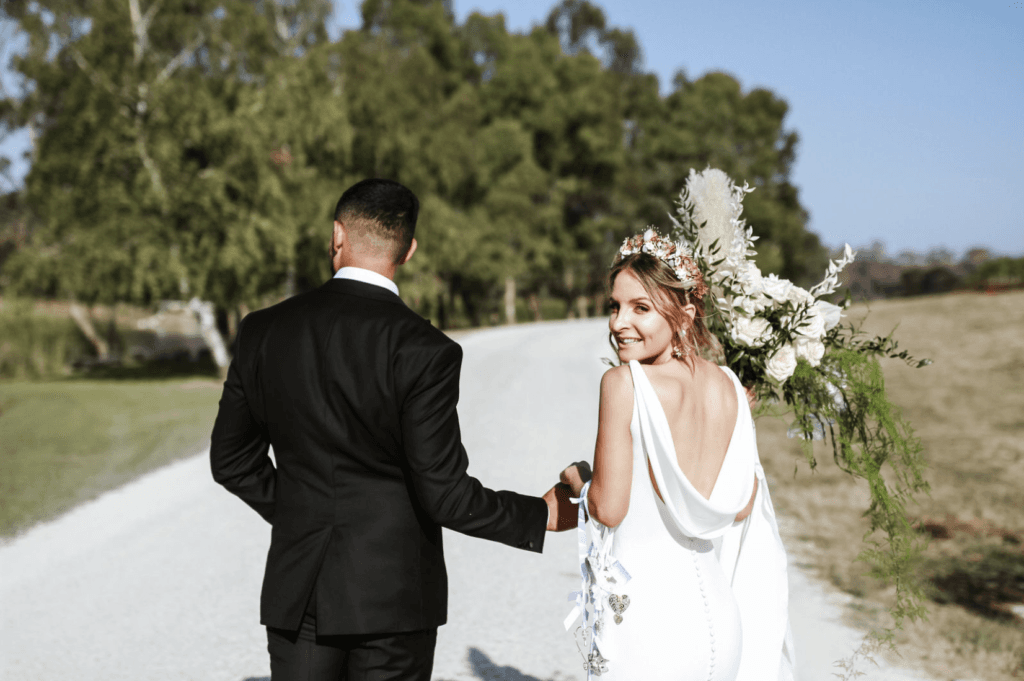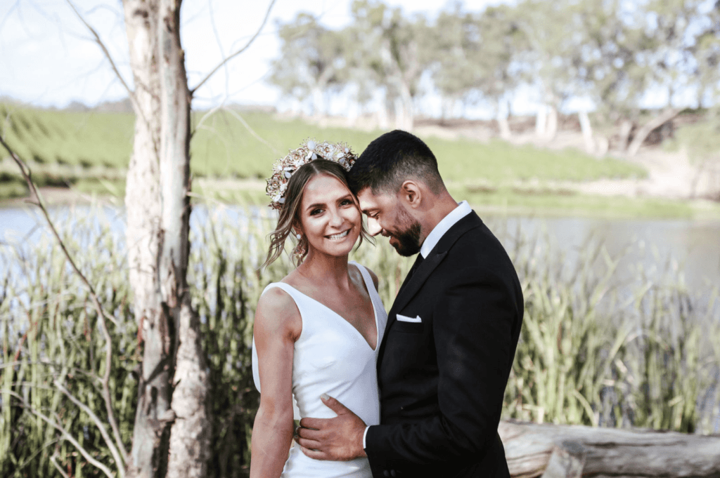 “Our wedding was so perfect to US! It was everything we wanted it to be – the ceremony was so relaxed out in the garden of Golding Wines (we opted for this instead of a traditional church ceremony) and everyone loved it. It was amazing to see all of our family together in one location. Our ceremony was definitely a highlight, but dancing with everyone all night also came close! We almost lost the venue less than a month before due to the Adelaide Hills bushfires, so just being able to be at the venue was heart-warming enough for us (you will note the burnt trees in our photos, but we used this as a backdrop advantage)”