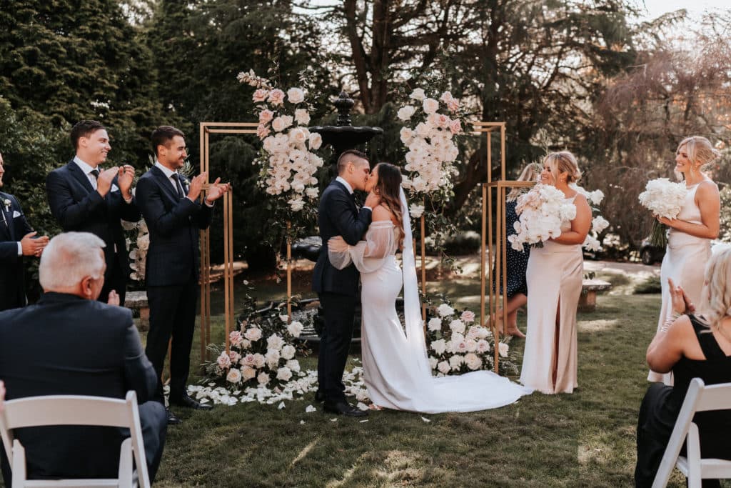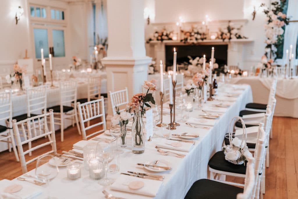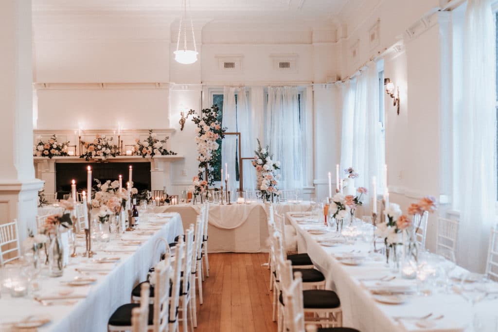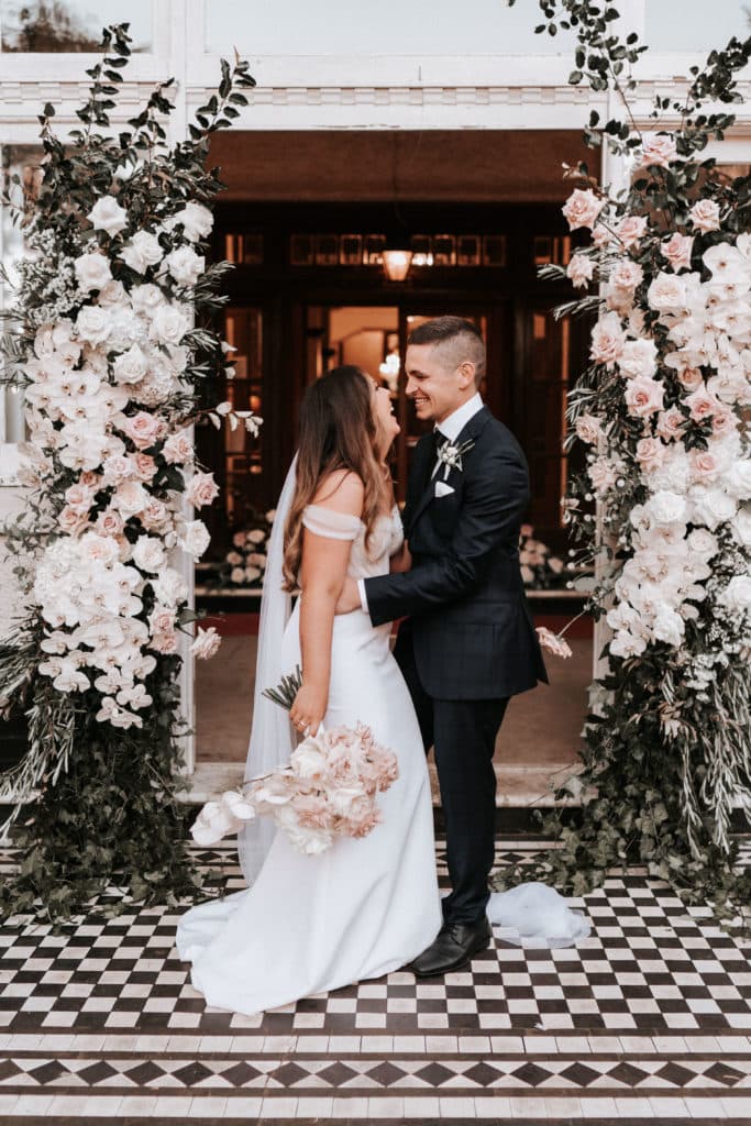 The most unique aspect of their Wedding was the venue, with the couple wanting their guests to enjoy a beautiful experience. “We booked the entire Robertson Hotel for the night and all of our guest stayed the night. The night before we had a rehearsal dinner with bridal party and immediate family which was a special night having all our nearest and dearest with us. After the ceremony we moved inside to the dining room for dinner a speeches by the fire places before we headed back outside with the band for our first dance under the stars, after our first dance we went back inside to the ballroom to get the party started. Our guests were immersed in the night and followed us on our magical journey through the historic 1920’s building.”