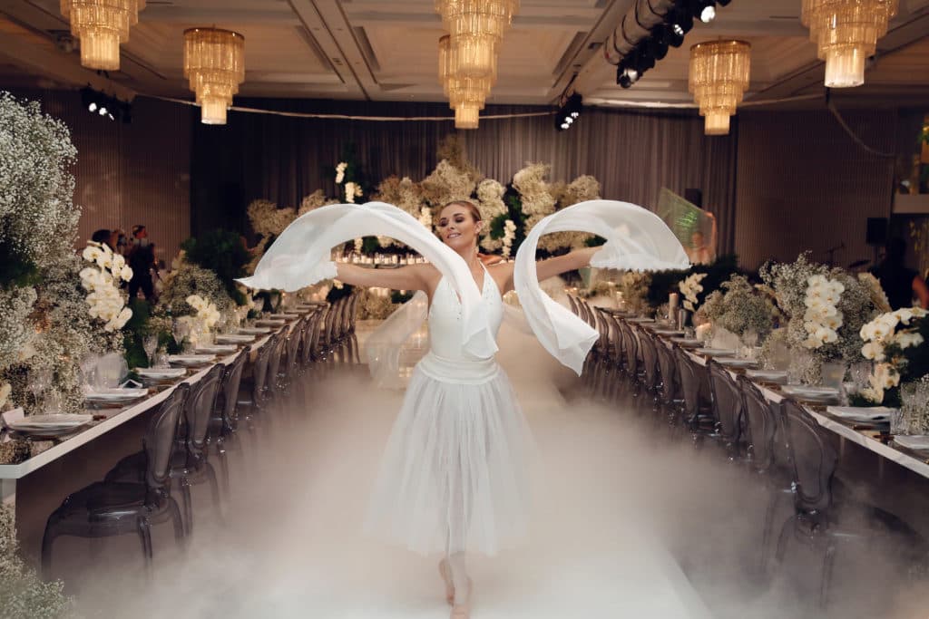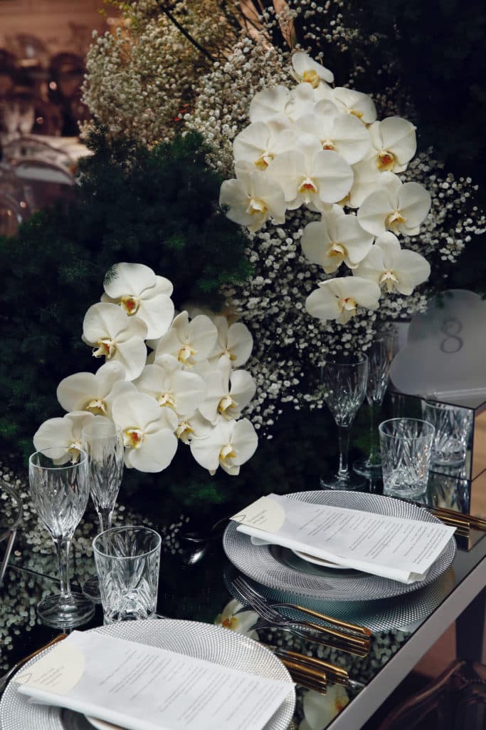 This couple’s Wedding beautifully reflected their journey together, with immaculate attention to detail everywhere you looked. The soft palette of green, silver and gold was representative of hope, joy and loyalty – with florals creating an ethereal and uplifting space. Baby’s breath and wild fennel was accompanied by ming fern and yellow phalaenopsis orchids. The Bride’s love for candles calling for an overflowing of soft, sprinkling light from over four hundred candles, with her favourite Bible verses incorporated within the stationary.