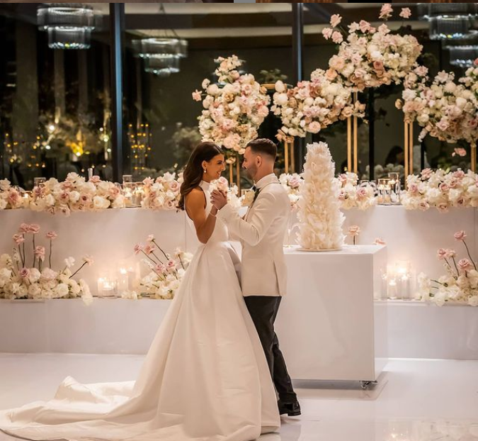 Karina and Joe tied the knot in a spectacular floral-filled wedding that has simply taken our breath away! Bride Karina donned a structured and sleek pure white gown with a high neck and Mantilla lace veil to complete her look. The reception spoke of luxury and abundance with pastel coloured florals filling every inch of the space with warm candles creating an ever so romantic ambience, all styled to perfection by Melissa Dcruz Florals. The couple and their guests laughed and danced the