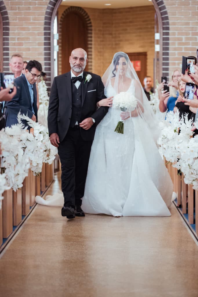 Photography: Yazzen Photography, Videography: Iconic Films, Ceremony Venue: Our Lady of the Angels Catholic Church, Reception Venue: Grand Paradiso Reception, MC and Management: John Alten, Stylist and Florist: Anna Wang, Entertainment: The A Team Entertainment, Xtreme Team Entertainment, DJ Tonez, Bridal Dress Designer: Leah Da Gloria, Bridal Shoes: Dior, Bridal Jewellery: Dior, Rosaries For Life, Bridal Headpiece: Roman & French, Engagement Rings: Jacque Fine Jewellery, Bridesmaid Dresses: White Runway, Groom’s Suit: Alex Goodman, Hair: The Coach House Parramatta, Makeup: Ann Hassarati