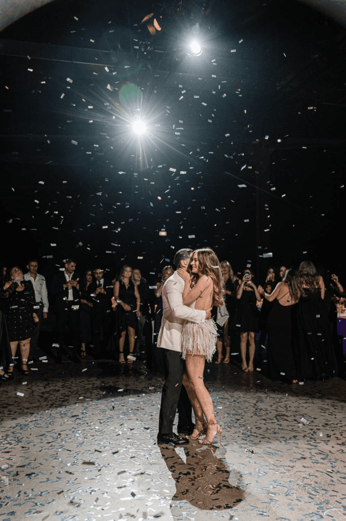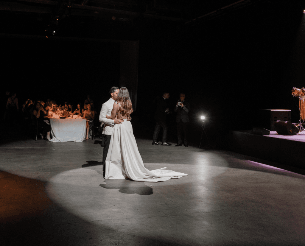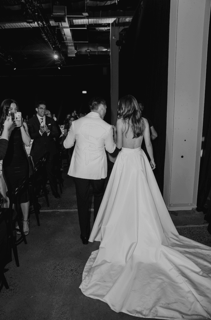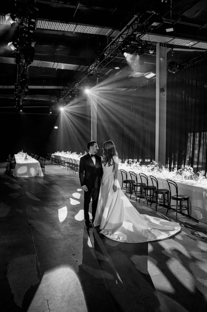 Reflecting back on their special day, the couple told Wedded Wonderland, “Our vision was to create a unique experience from start to finish. An experience not only for ourselves to be in awe in but also for our family and friends too. Bree Taylor from White Rabbit Projects executed this to absolute perfection, our reception screamed ‘us’ and had a euphoric atmosphere. We loved the unique aspect of taking a blank canvas and making it completely our own. One of the unique features at our wedding was the long kings table that we shared with our family and friends; it was 40 metres long. Due to the Covid-19 restrictions, we had to allow for a 1.5m space per family of 10 (which we filled with beautiful florals from Hermetica and candles). But the feeling was still there. We shared an intimate dining experience to celebrate our marriage.”