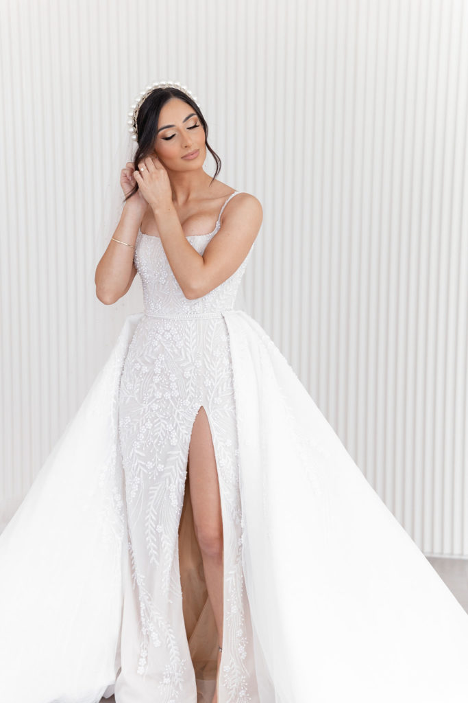 Alexandra and Noor tied the knot in a fun and glamorous wedding in Melbourne! Bride Alexandra looked every bit the glamorous bride in a stunningly detailed gown with a thigh high split by Alin Le Kal, complete with a beautiful pearl headband. Her Bridesmaids stood by her side in satin ivory gowns that complemented the Bride perfectly. Reflecting back on their Special Day, Bride Alexandra told Wedded Wonderland one of the most special moments of the entire day was the moment she walked down