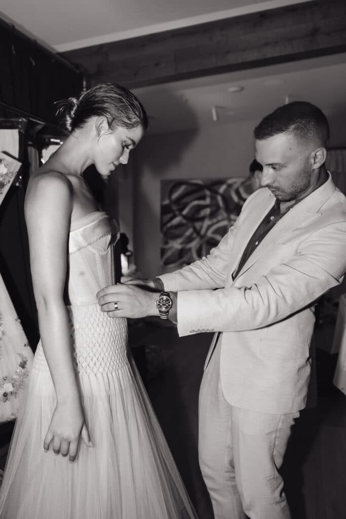 As models grace the runway in ethereal gowns adorned with delicate floral embroidery and intricate crystal work, where Nonna Domenica’s spirit and presence were certainly felt in every exquisite detail. Each piece is a testament to her enduring legacy of grace and beauty, from the whimsical drop waist gown to the regal bell-shaped ballgown.