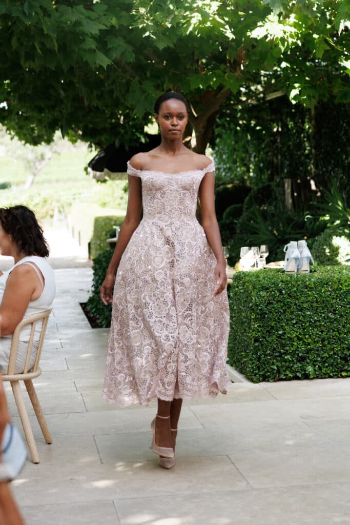 The Allora Domenica… sixteen-piece collection is a celebration of family, heritage, and the bonds that transcend beyond time and space. A standout piece was a veil featuring a hand-stitched quote from one of Domenica’s favourite poems, Rosabella del Molise. With two scarves paying homage to Domenica’s Calabrian roots and her journey to a new home in Australia, Vasileff honours her legacy with the reverence it deserves.
