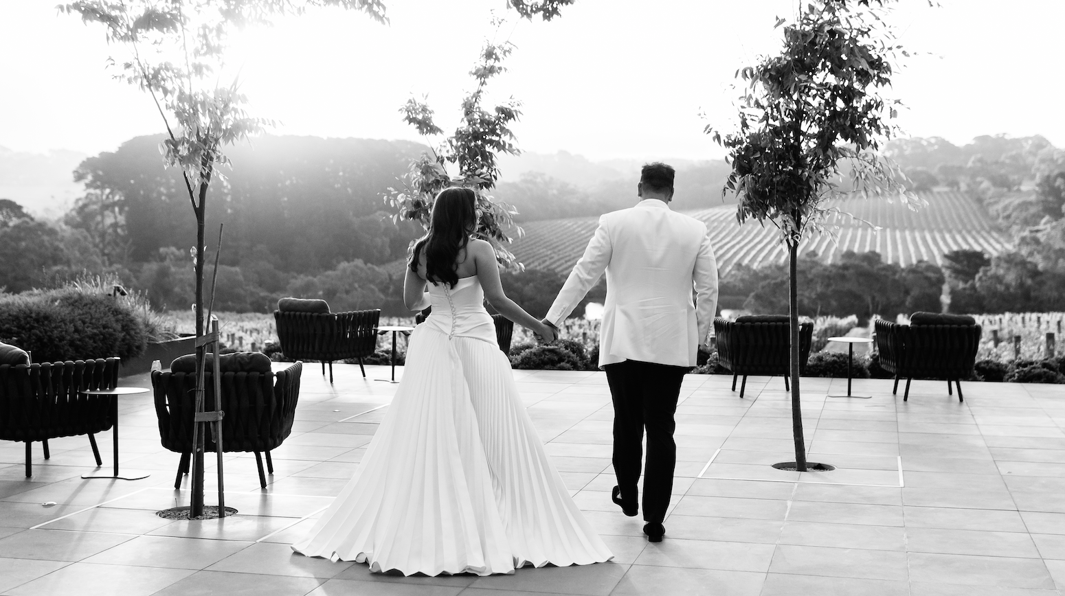 Memories are movies in our minds … and that was our dream for our wedding day; to create an experience not only for ourselves, but for our guests. Keeping authentic to our style, our day was all about classic modernism – the juxtaposition between past and present. With our ceremony held at the monastery of Red Hill, followed by a weekend away for all our guests at Jackalope, we tried to make each minute a special moment. The sleek, sharp and dark lines of Jackalope, contrasted with the all-whit