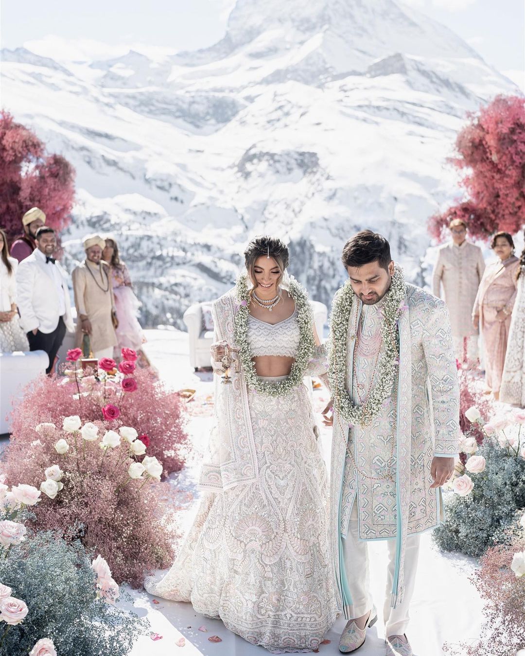 Bride Sonam and Groom Neil’s destination wedding in Switzerland is one we find ourselves endlessly in awe of. Honoring centuries-rich traditions with the decadent backdrop of Swiss snow-capped mountains, this destination wedding is one for the ages.