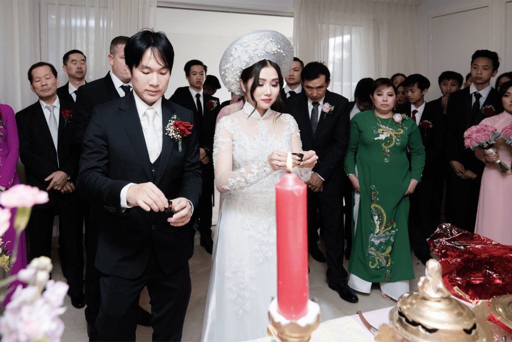 The couple’s wedding incorporated both traditional and modern elements. Coming from a Vietnamese background, a traditional tea ceremony a beautiful way of both families coming together before the big day. “The serving of tea to each other parents is to represent love and respect, a symbol of gratitude followed by the exchange of dowry” explains Teresa.
