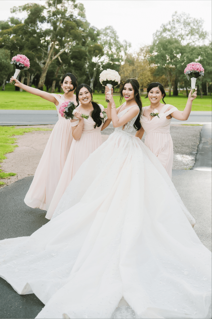 Photographer: B Captured by Ky Luu, Ceremony Venue: St. Francis Xavier’s Cathedral, Reception Venue: Donato Reception & Function Centre, Cinematographer: Vu Phan Productions, Celebrant: Fr Dang Nguyen OSA, Fr Paul Nguyen Cong Tru, Fr John Nguyen OFM Cap, Entertainment: Entertainment Adelaide, Bridal Dress Designer: Ao Dai Minh Chau, Steven Khalil, Demetrios, Bridal Shoes: Christian Louboutin, Engagement Rings: Kim Chau Jewellers, Groom’s Suit: Calibre, Cake Designer: Cristarella Cakes, Invitation Designer: Thiep Cuoi VIP, Florist: Centered Elegance, Dream Wedding Decor, Favours: Giftware Direct, Hair Dresser: Vee Nguyen, Makeup Artists: Makeovers by Annie