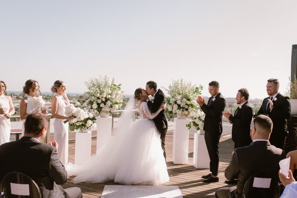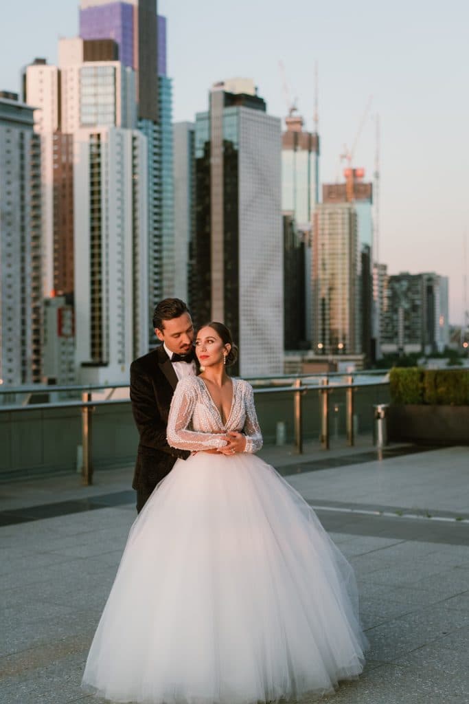 The couple’s wedding was nothing short of laughter, tears of happiness and heartfelt words. Together they tied the knot on the deck at Luminare, overlooking the gorgeous city of Melbourne.