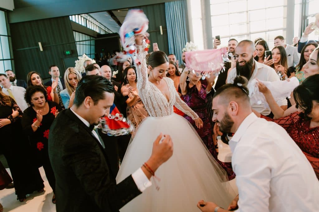The theme of the couple’s wedding was simple and elegant, with touches of white and gold details. Their cultural mix of Assyrian, Spanish and English roots was present throughout the entertainment for the wedding and brought together cultural traditions from both the bride and the groom’s side.