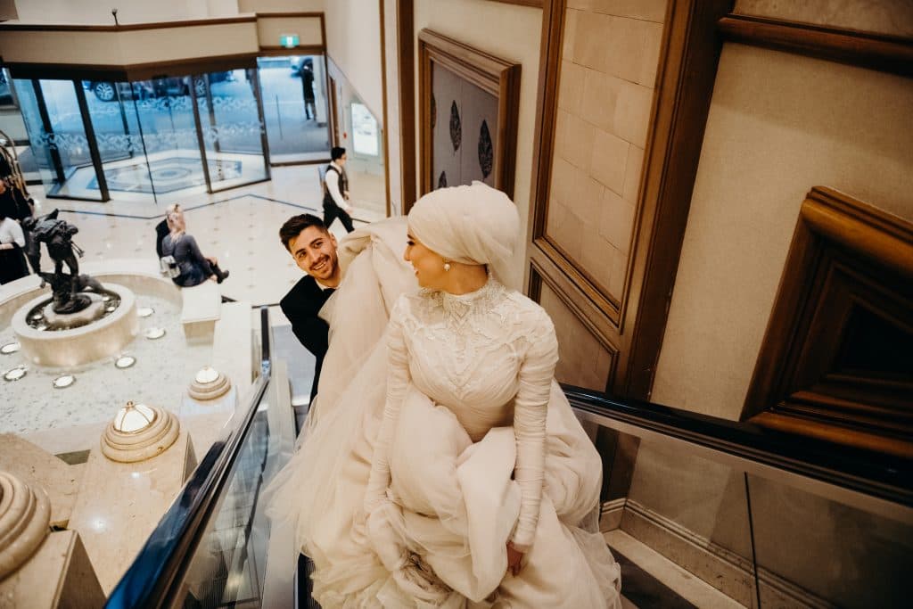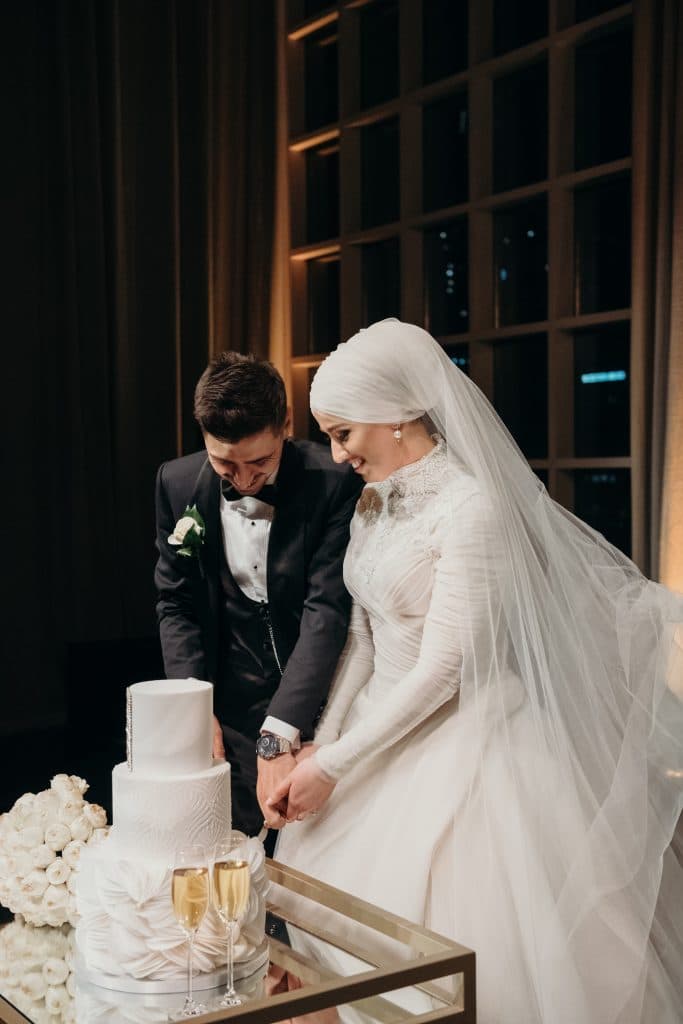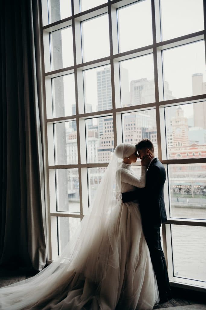 Wedding Gown: Annette of Melbourne Couture, Grooms Suit: Prinzi Collections, Bouquet: Something Bloomed, Photographer & Videographer: T-One Image, Earrings: Gucci, Shoes: Valentino, Reception: Metropolis Events, Ceremony: Glasshaus Outside, Celebrant: Sureyya Dogan Marriages, Cake Designer: Cakes by Sal