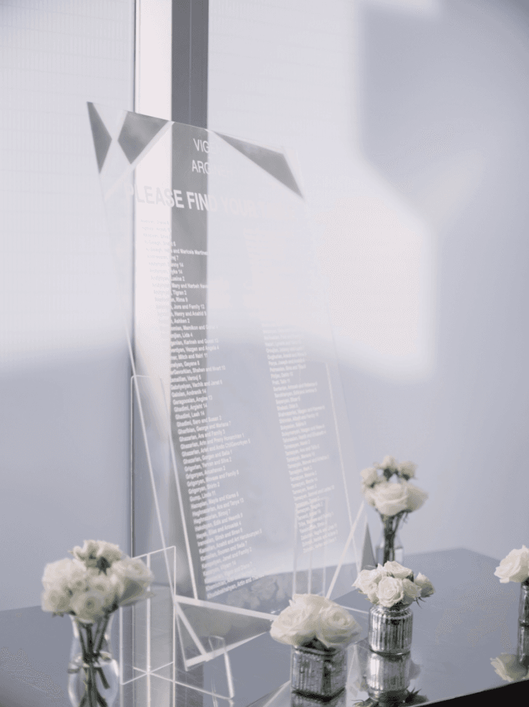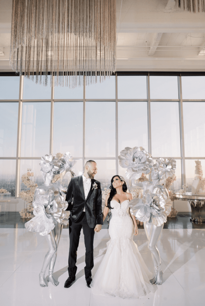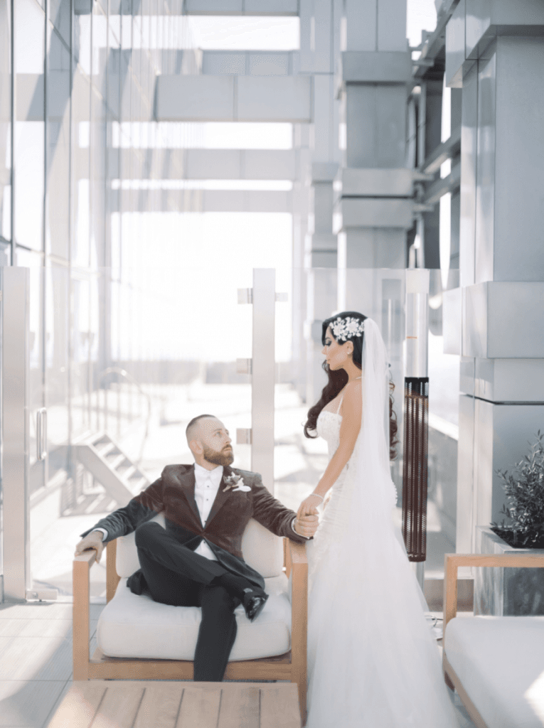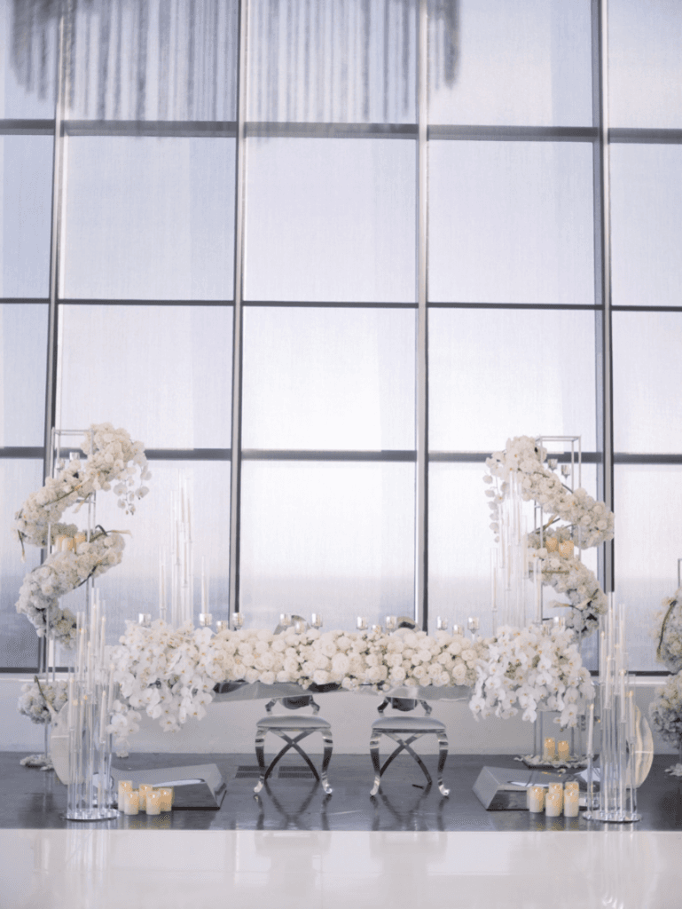 Vigen and Argineh’s big day was everything modern, elegant and glamorous; from the skyline view of Los Angeles, to the stylish silver details. The minimalistic elements of the reception, perfectly complemented the overwhelming views of Los Angeles, and also provided an ‘airy, in the clouds’ ambience that brought the entire theme together.