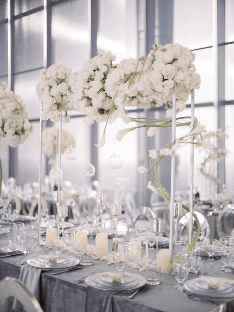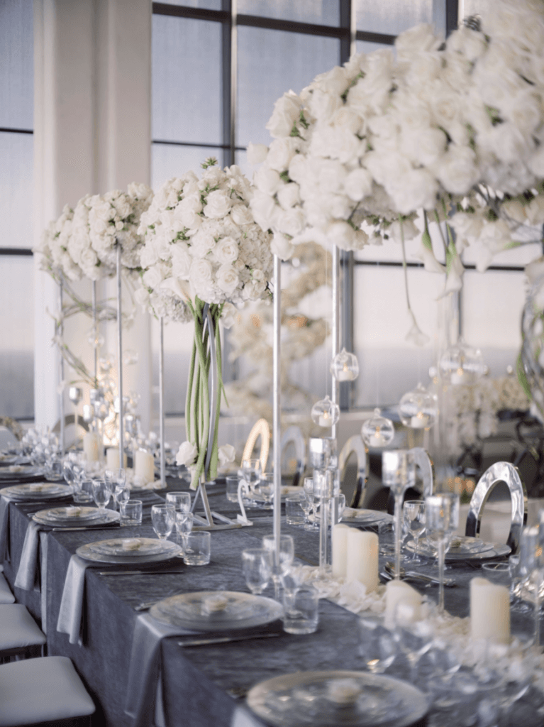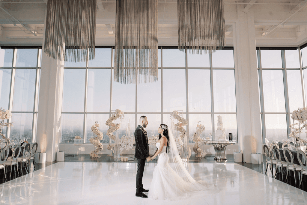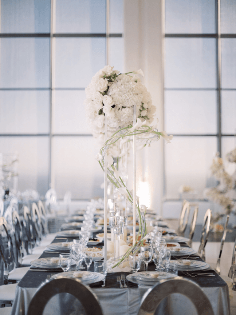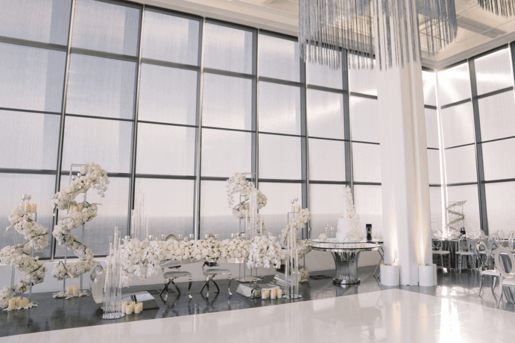 Vigen and Argineh’s big day was everything modern, elegant and glamorous; from the skyline view of Los Angeles, to the stylish silver details. The minimalistic elements of the reception, perfectly complemented the overwhelming views of Los Angeles, and also provided an ‘airy, in the clouds’ ambience that brought the entire theme together.