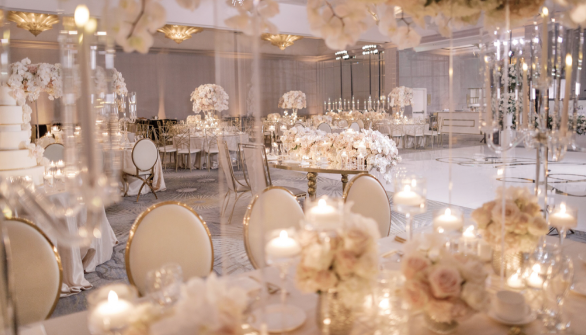 Hrag and Lara’s big day was the epitome of romance. The couple opted for classic hues of blush and pink, beige and gold. Elements included a multitude of candles in different shapes and sizes, and incredible floral statements all throughout the reception. We particularly love that the mother-of-the-bride, as well as the bridesmaids, were dressed in soft pink gowns, highlighting the bride’s white gown. Furthermore, we are obsessed with the grand, mirrored seating chart, which has