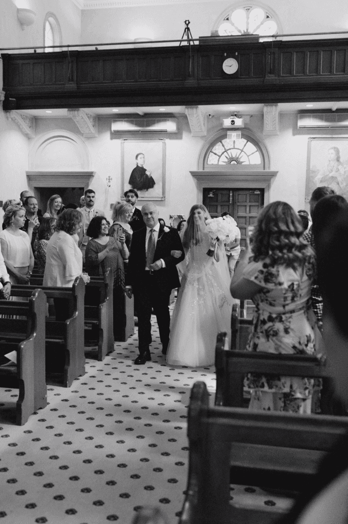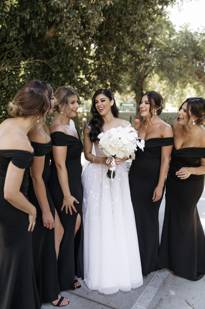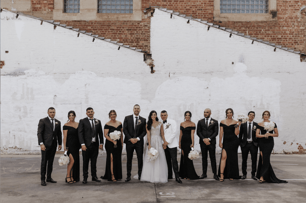 Photographer: Dan Evans Photography, Ceremony Venue: The Monastery Church, Reception Venue: National Wine Centre, Cinematographer: Infinity Films, Entertainment: Entertainment Adelaide, Bridal Dress & Veil Designer: Paolo Sebastian, Bridal Shoes: Dior, Bridal Jewellery: Chanel earrings & Bride’s Grandmothers’ Vintage Bracelet & Ring, Engagement Rings: Fili Jewellery, Bridesmaid Dresses Designer: Nookie, Flower Girl Dresses Designer: Chloe and Amelie, Groom’s Suit: Dresd, Groomsmen’s Suits: Peter Jackson, Pageboy Suit: Bardot Junior, Cake Designer: Little Lil’s Cakery, Invitation Designer: Jess Fantasia, Florist: Blooming Bridal, Favours: Handmade Candles By MOG, Hairdresser: Alexia Mitrossilis, Makeup Artists: Brianna Artrhur & Sarah Callisto