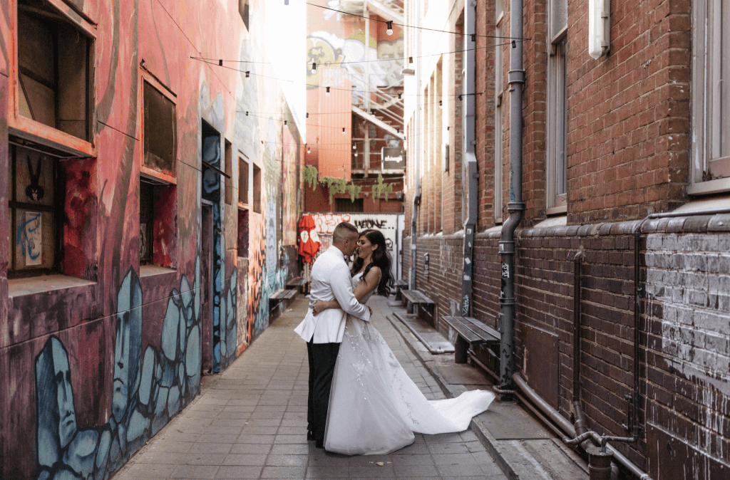 “The best moment was when the dance floor opened at the reception! Our wedding was right before the lockdown restrictions came in place, however COVID still put a massive damper on the lead up to the wedding – we almost thought we weren’t going to be able to go ahead. When the dance floor finally opened at the reception, I couldn’t believe how many people jumped up and had the time of their lives! It was full and stayed that way most of the night. It’s like everyone was relieved to be able to let their hair down and forget about COVID for a night. I think people thought it would be the last Hurrah and wanted to go out with a bang! The official lock down was announced the day after our wedding…”