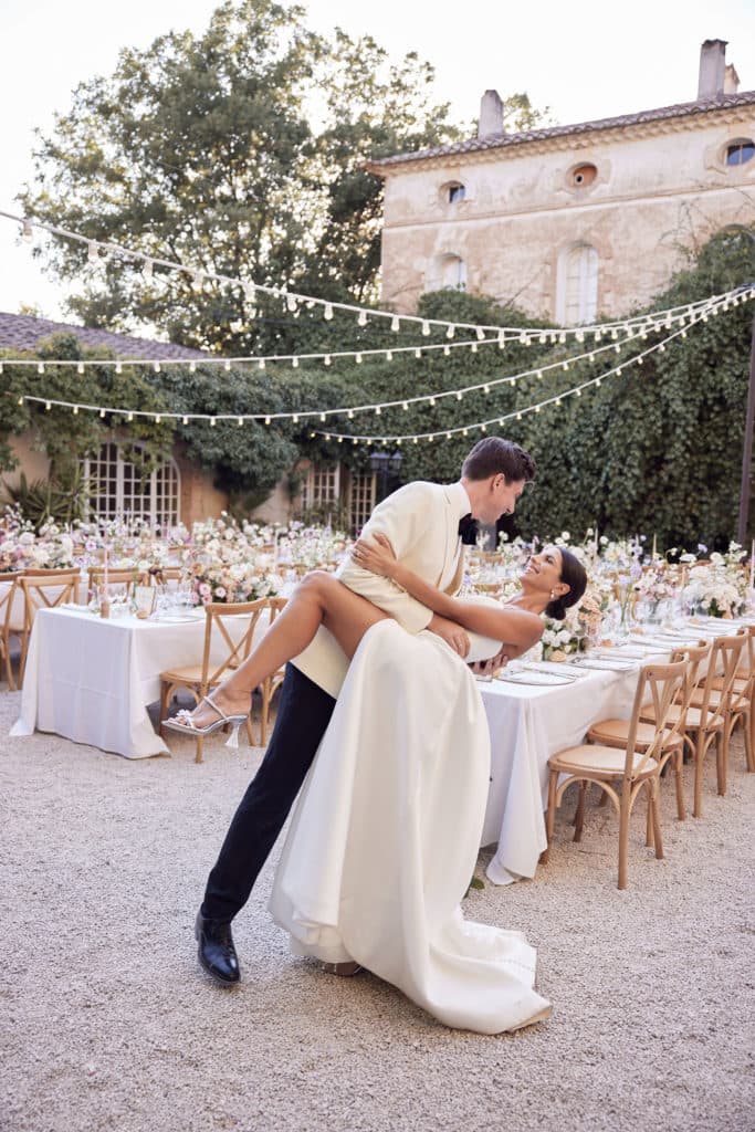 The entire wedding was an absolute french dream! From the wood parasols, paddle fans, locally sourced wines and crafted beers, live musicians, oyster bar, canapes from Gaude Froy reception and a magician, Michelle and Bay made all of their wedding wishes come true. The couple also incorporated some sentimental moments into the big day. The Bride’s Mum’s family is Italian, and her Nonno is from Calabria, she mentioned he “absolutely loved the Tarantella, we had this on the must play list for the DJ, to play this in his memory as he recently passed”. To Commemorate her Dad’s mothers French heritage, the wedding was held in France and the menu featured French delicacies. Overall, their favourite moment was “when all the wedding guests grouped together for a photo in front of the chateau” the couple arranged metre-high balloons that were released into the crowd moments before the photos were snapped. “It was so picturesque with the balloons floating about above our heads, with many of the guests bopping them to each other, smiling and laughing, just after our ceremony. It still brings that raw emotion just now, thinking of it!”