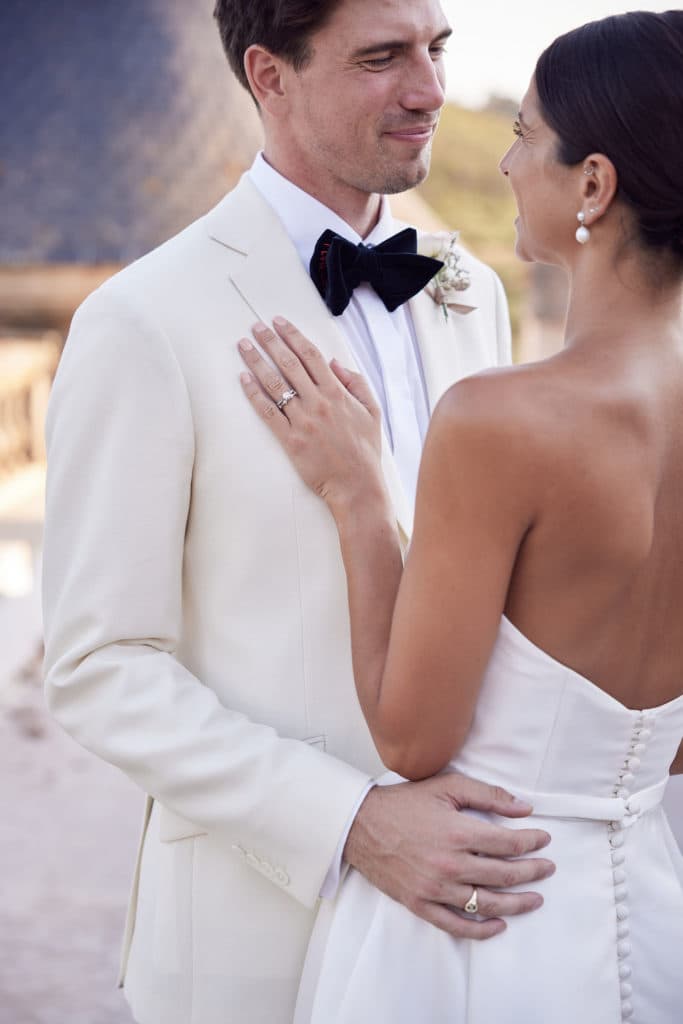 “For the ceremony, I wore the straps, along with Bay’s great-grandmother’s gorgeous pearl necklace and some basic pearl studs. The necklace was slightly too long for the look I wanted, so Bay’s mum cut a piece of the lining from the inside of her dress, and tied it up higher around my neck. This was all the more meaningful, especially for this part of the day.