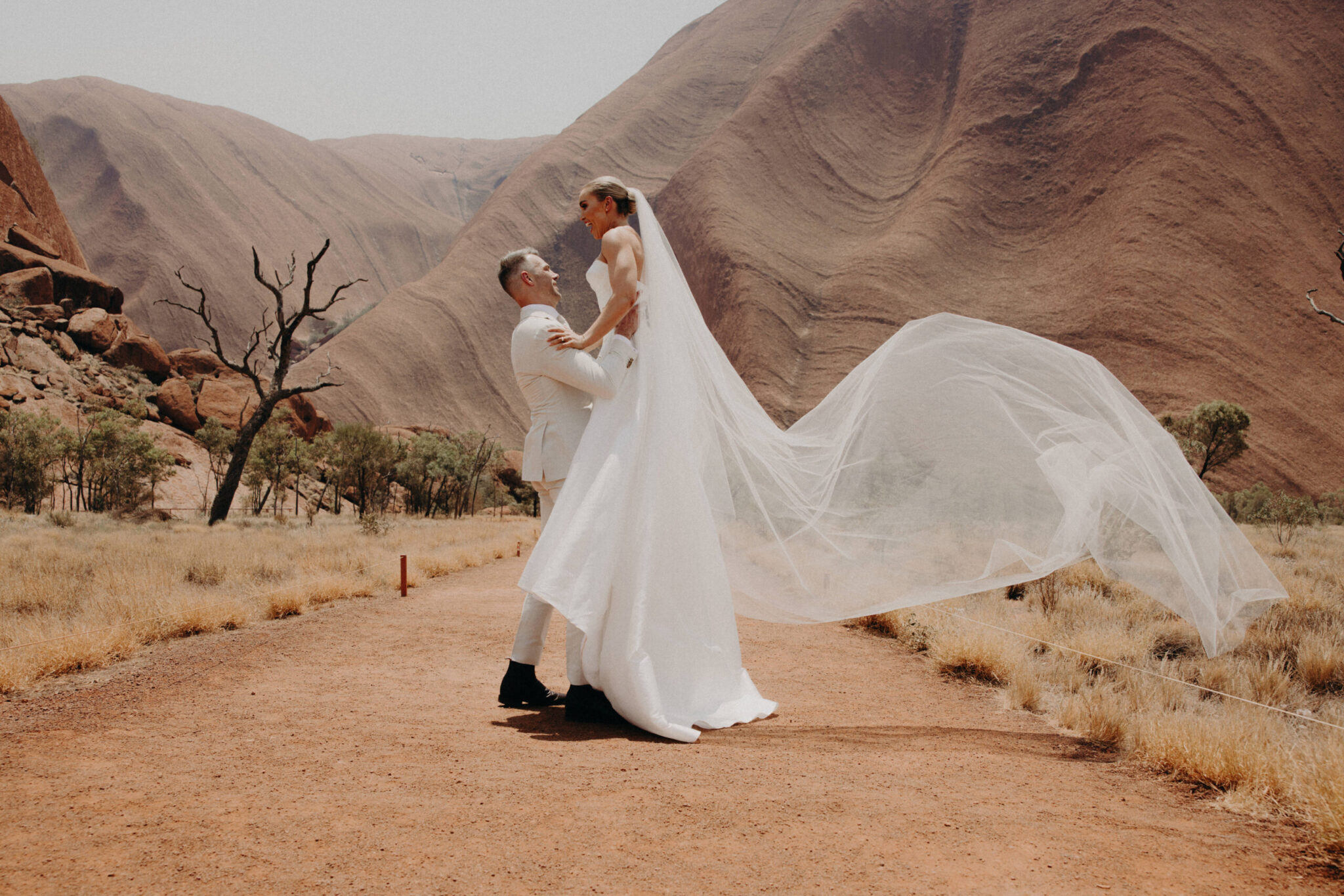 Congratulations to the AFL power couple who embraced the beautiful Australian landscape and got married at the iconic Uluru in the Northern Territory! In the heart of Australia, Abbey Holmes, the internet sensation and former Australian Rules footballer for the Adelaide Football Club in the AFL Women’s league, and Keegan Brooksby, a professional Australian Rules footballer, who recently played at the Hawthorn Football Club in the AFL, orchestrated a wedding that embraced the dunes and des