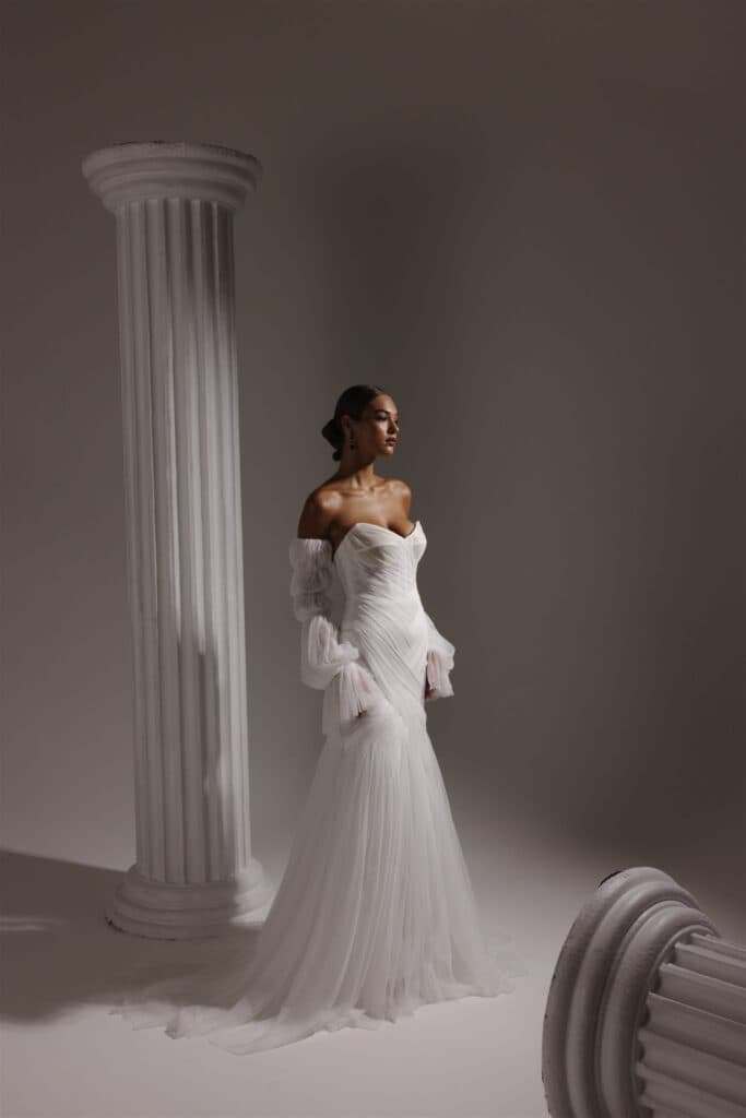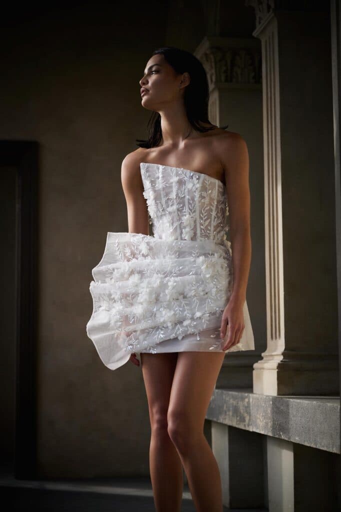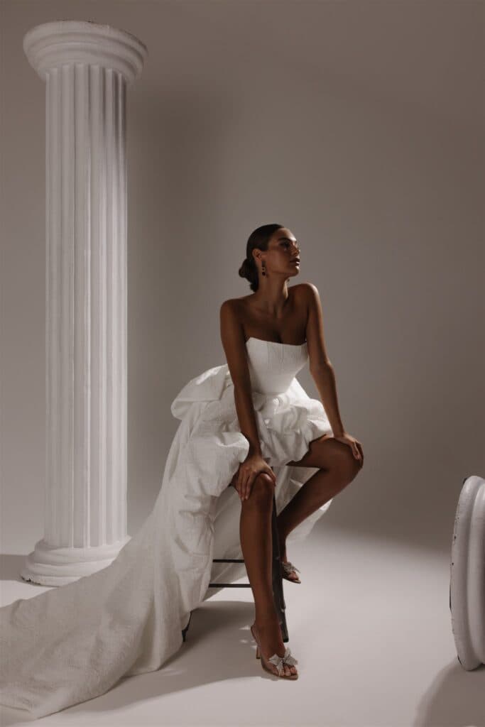 Bridal minis, sculptural gowns, and artistic textures await you at Eliya the Label, all at an accessible price point. You’ll love their modern and effortlessly flattering designs!