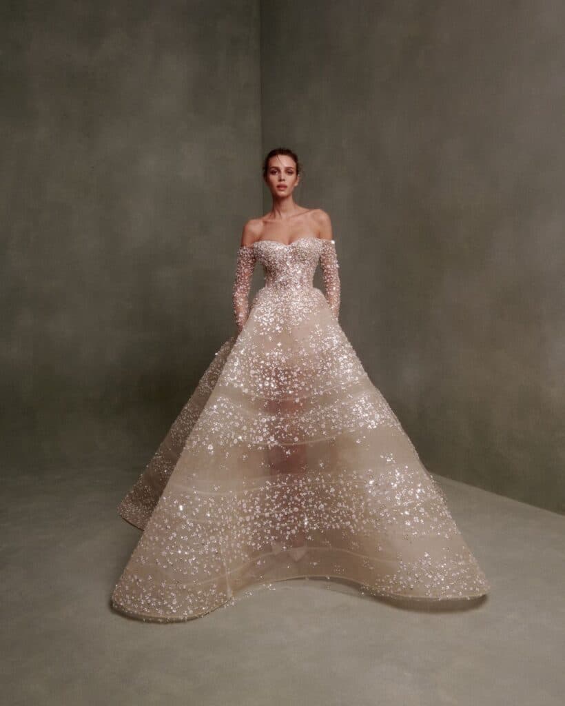 Glamour, volume, and drama converge in the George Habibeh Couture house, where superstar brides will find ball gowns fit for queens. What’s not to love?