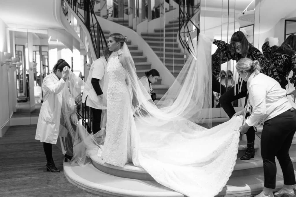 For the ceremony, Richie chose a classic white Chanel gown that was nothing short of breathtaking. She donned a stunning Haute couture halter gown adorned with shimmering white and iridescent beads, “It is such magic. I honestly think Elliot is going to love it. He is my biggest cheerleader when it comes to anything I wear.”