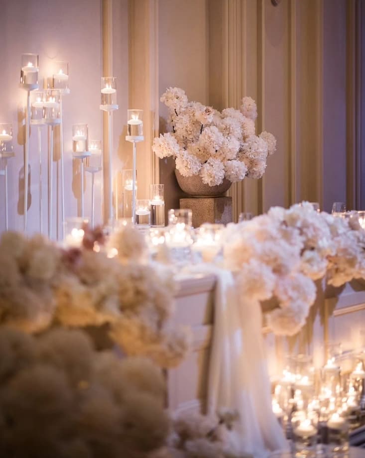Imagine a ballroom bathed in shimmering light and blooms. Dina El-Khair orchestrates a magical setting with an abundance of flowers, glowing candles, and string lights that transform any space into a starlit wonderland.