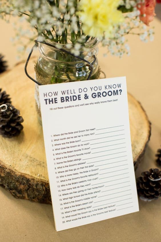 Table games are becoming more and more popular at weddings, especially during the current restrictions. What better than a funny round of trivia about the newlyweds, and the prospect of winning an interesting present?