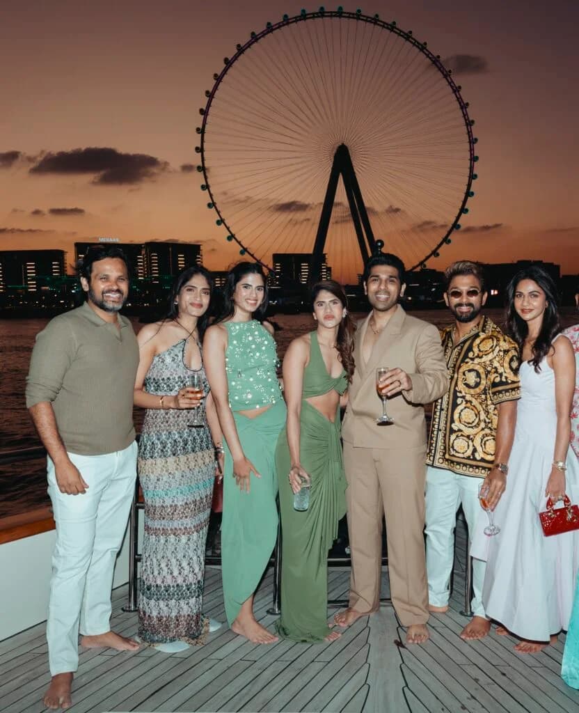 The two-day celebration kicked off in the heart of Dubai, where the couple welcomed their loved ones to a day filled with warmth and connection. Surrounded by a circle of close friends and family, Allu and Nayanika’s pre-wedding celebration stood as a testament to their shared journey and the families that brought them together. Set amidst Dubai’s dazzling skyline, the festivities exuded both international sensibility and an elegant, timeless appeal.