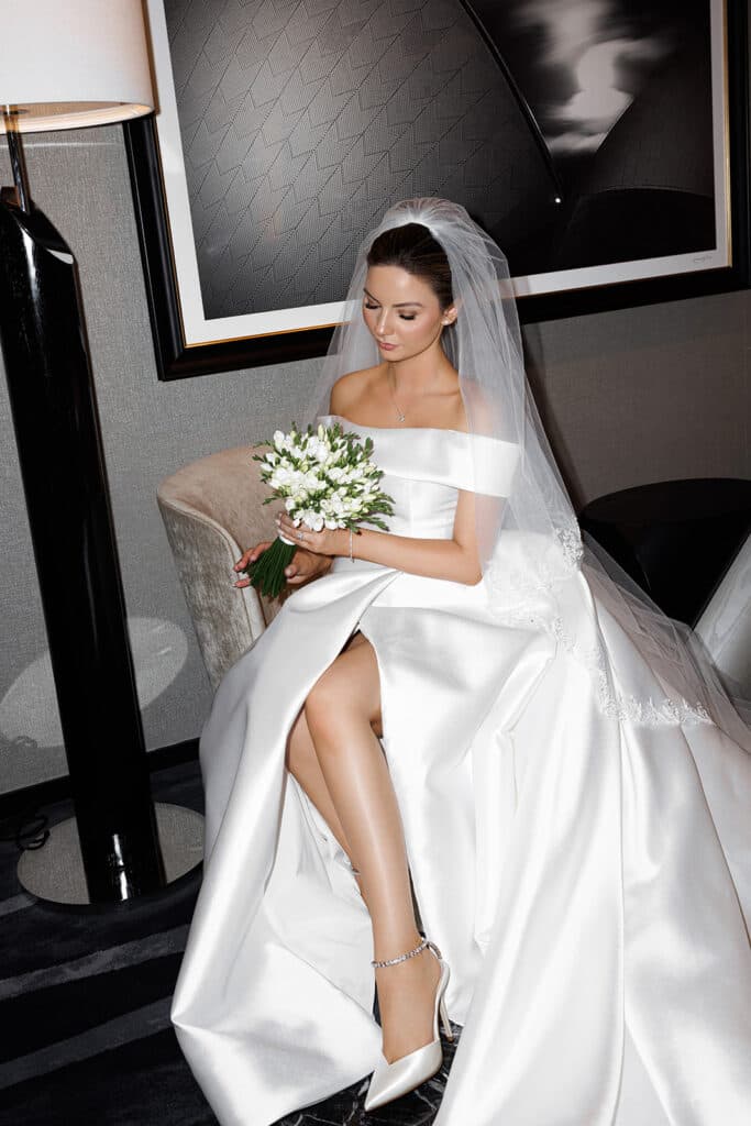 When planning their wedding, the couple envisioned a “modern, enchanting, clean, and luxurious” celebration—and wow, did they get it! They chose Crown Sydney as their venue, wanting to host their wedding at an iconic Sydney location that held special meaning for them. As Jelena explains, “As we had our first date in Barangaroo, it was only fitting to have our wedding at Crown!”