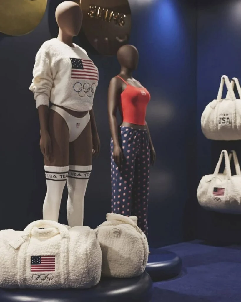 SKIMS opened a Milan pop-up tied to Team USA and positioned itself as the off-duty wardrobe of Olympians. The concept is clever. Instead of competing with technical sportswear companies, it occupies the hours athletes spend away from competition. Airport outfits, hotel lounging and recovery days become the category.