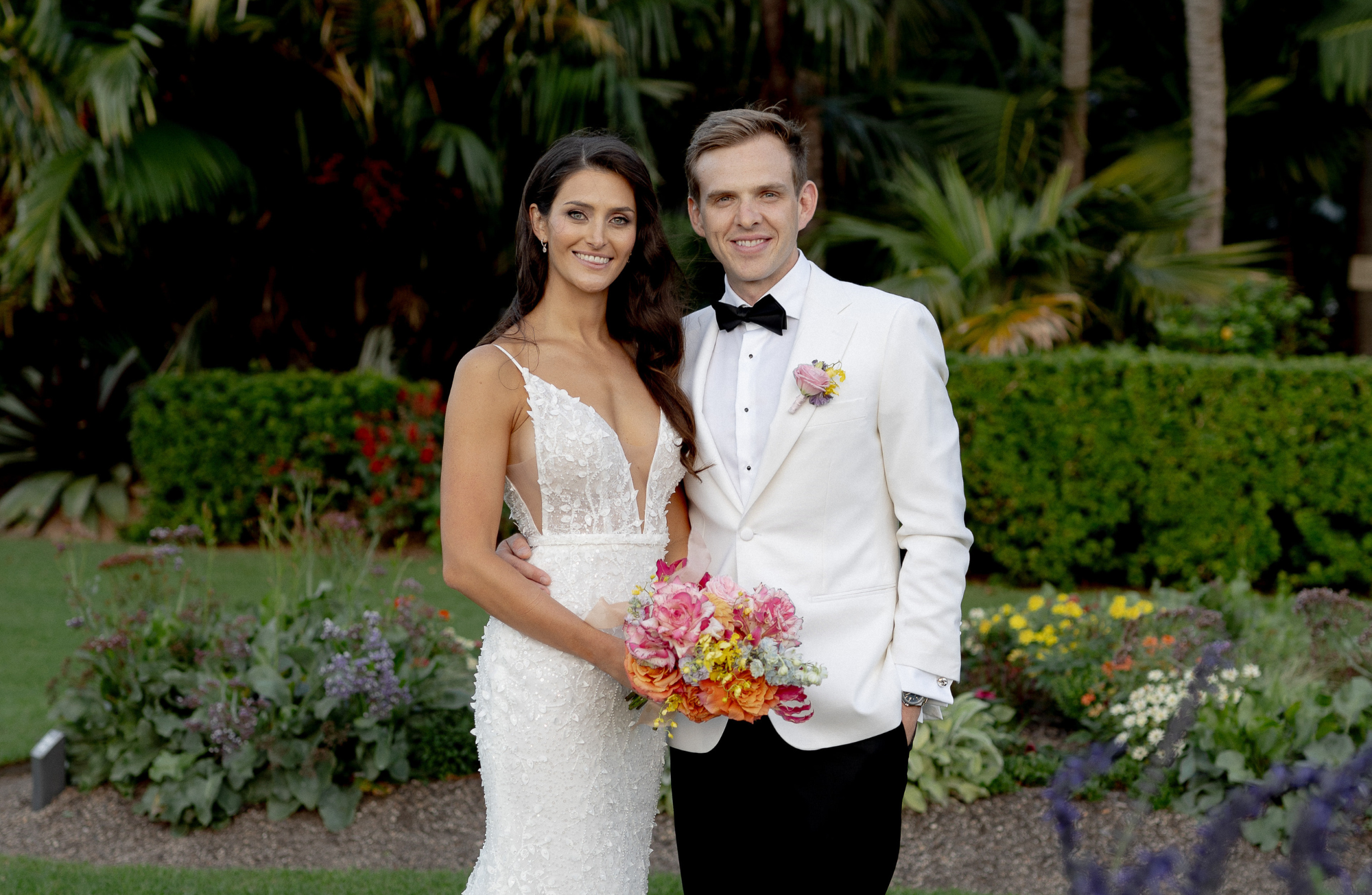 Lovers of nature and urban beauty! Michaellie and Kris’ garden themed wedding at Botanic House was a stylish city-scape celebration! Nestled in the heart of Sydney’s lush Botanic Gardens, this gorgeous couple tied the knot in a true urban oasis! How They Met After a year of meaningful conversations online, Michaellie and Kris decided it was time to meet, and the connection was instantaneous. They soon embarked on a life filled with adventures, including travels, adopting