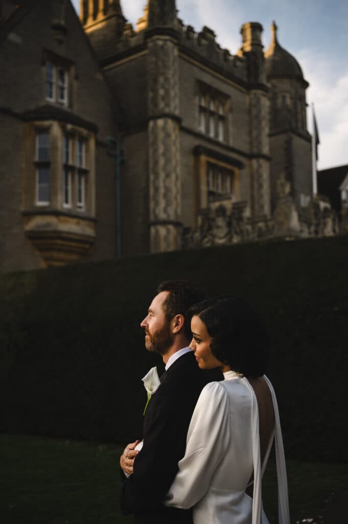 The orangery “offered the perfect balance of elegance and natural light, making it feel both grand and intimate.” The Cotswolds, known for its rolling hills and romantic charm, became “the ideal halfway point for their families to meet and celebrate.”