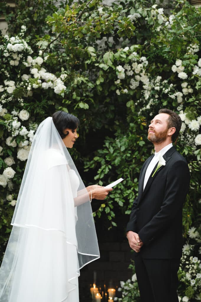 “Sunlight streamed through, illuminating their faces as family and friends looked on from either side of the aisle. The combination of the natural setting, the deeply personal ceremony, and the presence of loved ones from around the world created a moment that felt suspended in time, pure, emotional and profoundly unifying.”