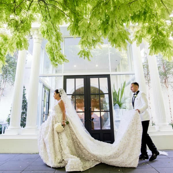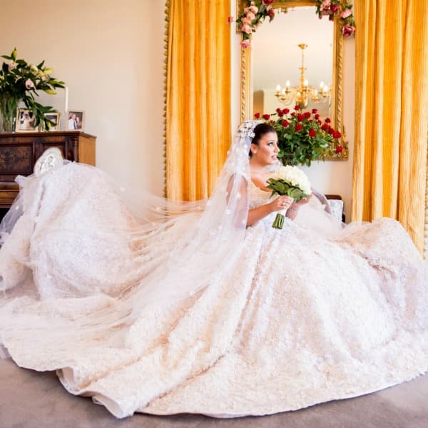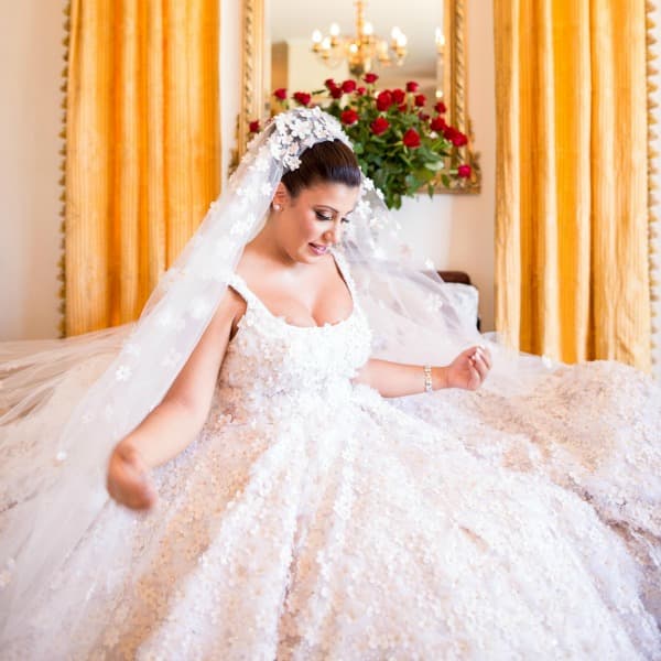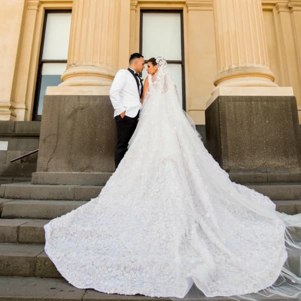 Describing the moment Marisa first saw her dress designer by Alin Le Kal, she told Wedded Wonderland she couldn’t help but cry. “I honestly felt like a real life princess as I walked down the aisle adorned in hundreds of silk and crystal flowers with my endless train trailing behind me.” A true vision!