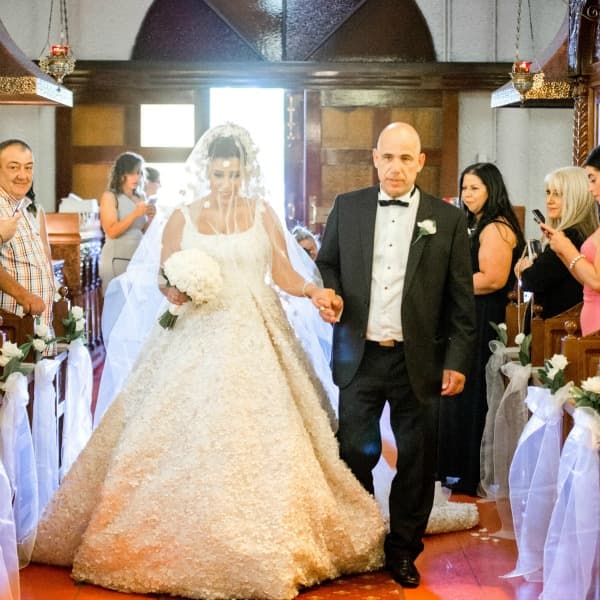 The ceremony took place at St Nektarios Orthodox Church where the traditional elegance of the church shined through as decorations were kept to a minimum. Keeping with a white floral theme, Marisa described her Wedding as an elegant and sophisticated spin on the traditional big fat Greek wedding.