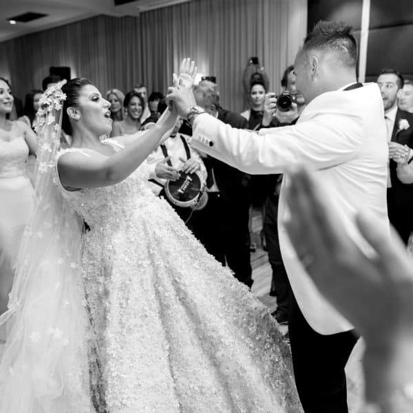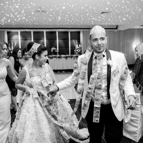 The reception was held at the Brighton International, which was adorned in sophisticated black and white décor, simple floral centerpieces and an infusion of traditions. Greek traditions were celebrated throughout the day and night, including a tradition that allows guests to pin money on the Bride and Groom during a dance. The beautiful tradition symbolises a life of wealth and prosperity in every aspect of life.