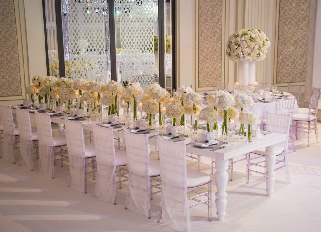 This Dubai Wedding is dreamy! Bride Ashley’s brief was simple – she wanted an all-white, elegant Wedding with flowers everywhere, and Wedding planner extraordinaire Zainab Alsalih from Carousel, turned her vision into a perfect reality. The overall feel of the Wedding was timeless and elegant, with flowers being the focal point of the design, accentuated with candles and textured linens. Peonies and David Austin roses filled the air with the most romantic scent and the candles and mi