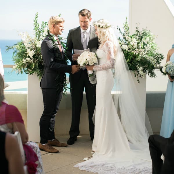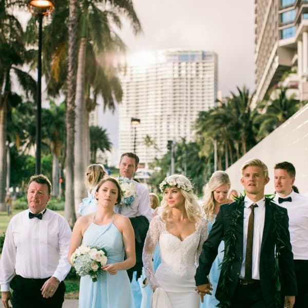 Ceremony & Reception Venue Trump Hotel Waikiki Penthouse Suite @trumpwaikiki Cinematographer Bright Sky Weddings Entertainment Caroline Campbell @carolinetheviolinist William Joseph Bridal dress designer Leah da Gloria @leahdagloria Bridal shoes Whittner @wittnershoes Engagement rings Michael Hill @michaelhillj Groom’s suit Zara @zara Groomsmen suits Zara @zara Cake designer A Cake life @acakelife Invitation designer Minted Florist Debbie Hemingway @dbhemingway Hair & Makeup Face Art Beauty @faceartbeauty